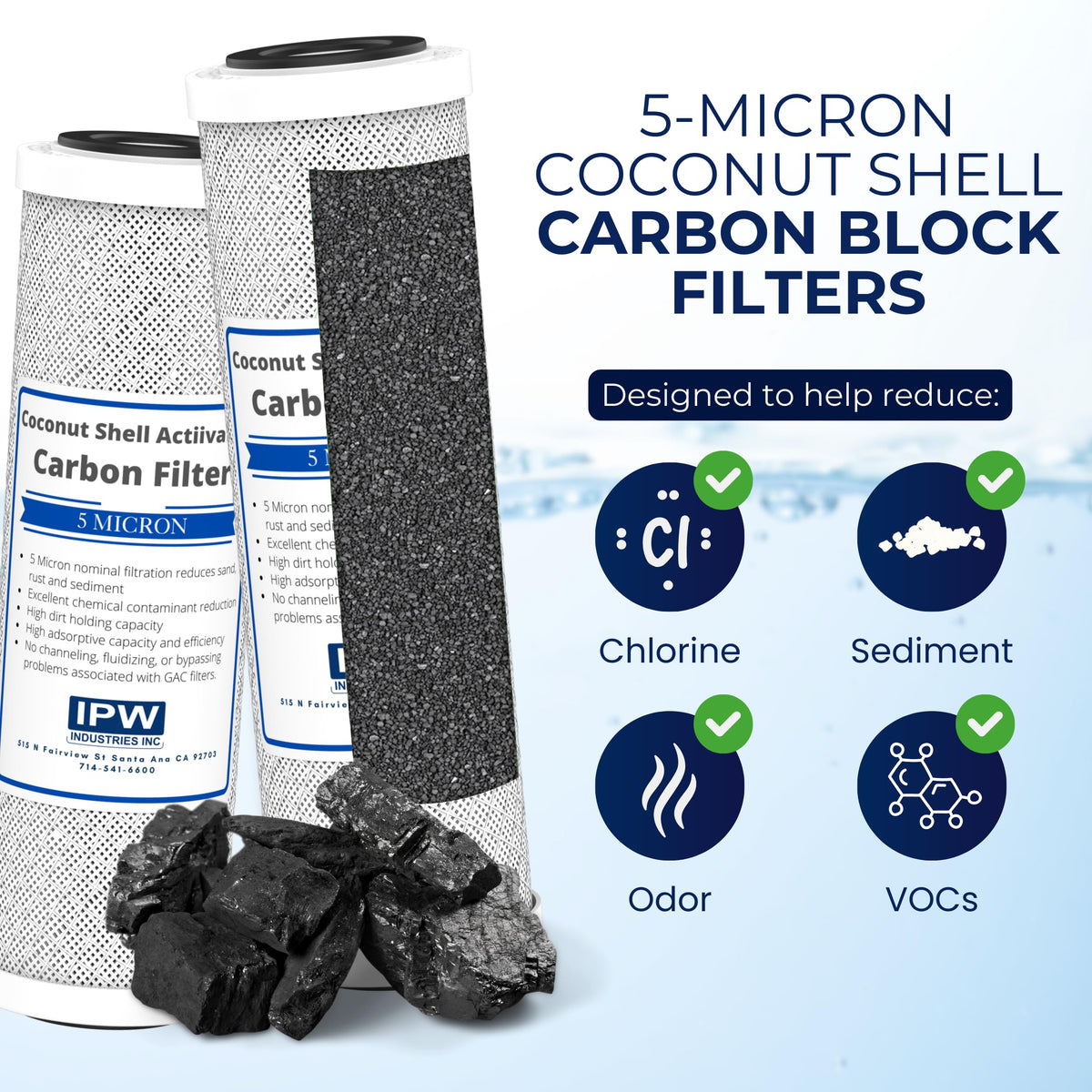 IPW Industries, Inc. - Water Pur Company (CCI-10CLW12) Filter Canister and (CCI-10-Ca) Carbon Block Filters - 1/2'' NPT Ports fo