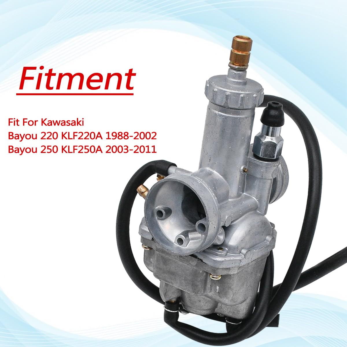 Jdllong Carburetor For K-Awasaki Bayou 220 Klf220 1988-1998 For Bayou 250 Klf250 Carb 2003-2011 With Air Filter And Fuel Gas Petcock Valve Switch