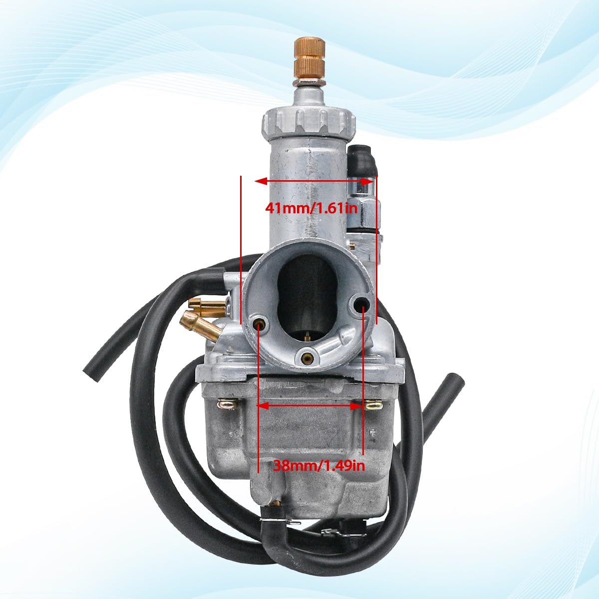 Q: What comes included in the package when purchasing this carburetor?A: The package includes 1 x Carburetor, 3 x Fuel Lines, 2 x Fuel Filters, 1 x Air Filter, 1 x Gas Fuel Tank Petcock, and 1 x Carbon Dirt Jet Cleaner Tool Kit, as shown in the product images.