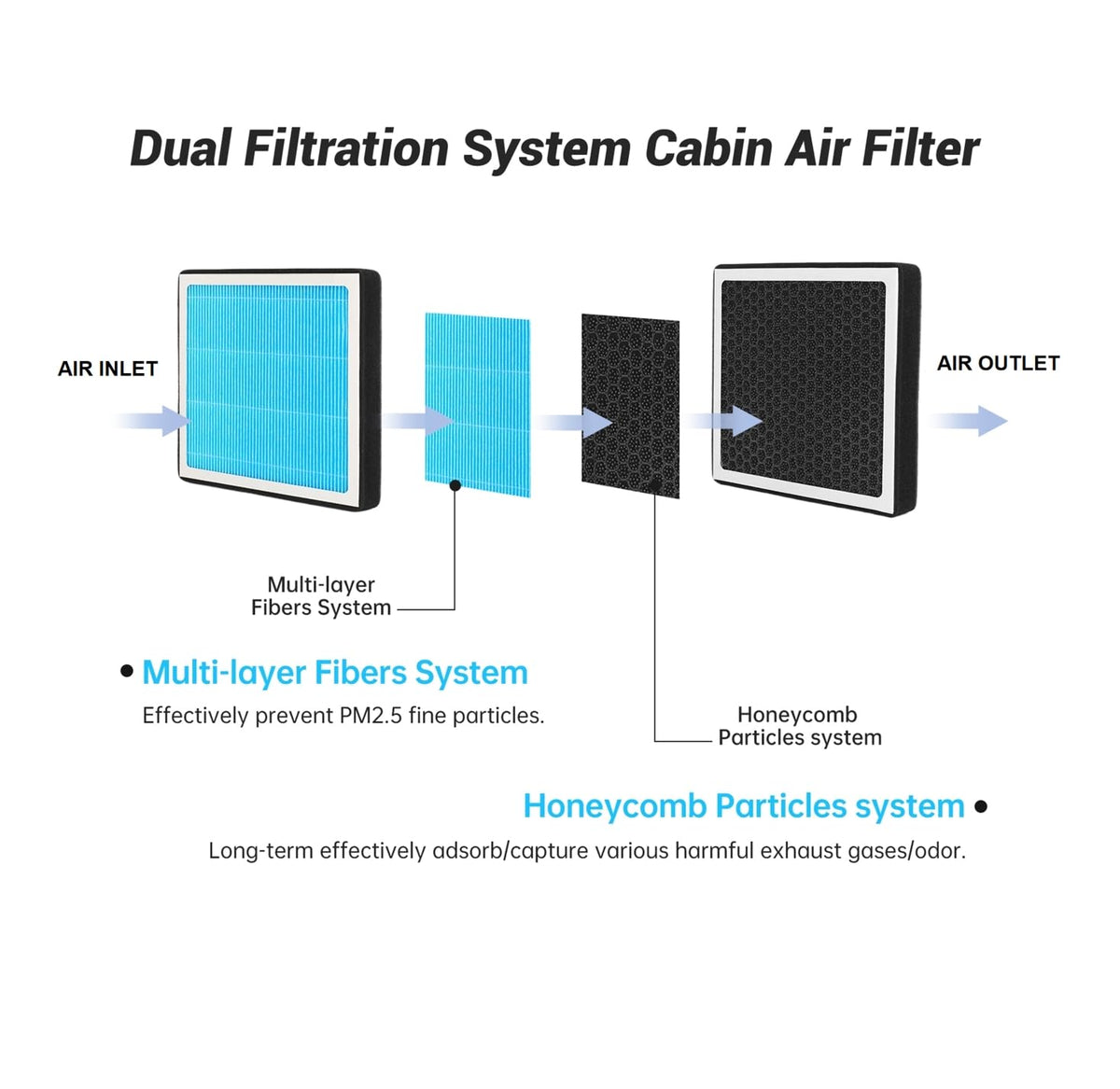 Q: What materials are used in the JOGOAUTO Cabin Air Filter?A: The JOGOAUTO Cabin Air Filter is made from high-quality fiber material, which effectively captures harmful particles and gases, helping you breathe better air while driving.
