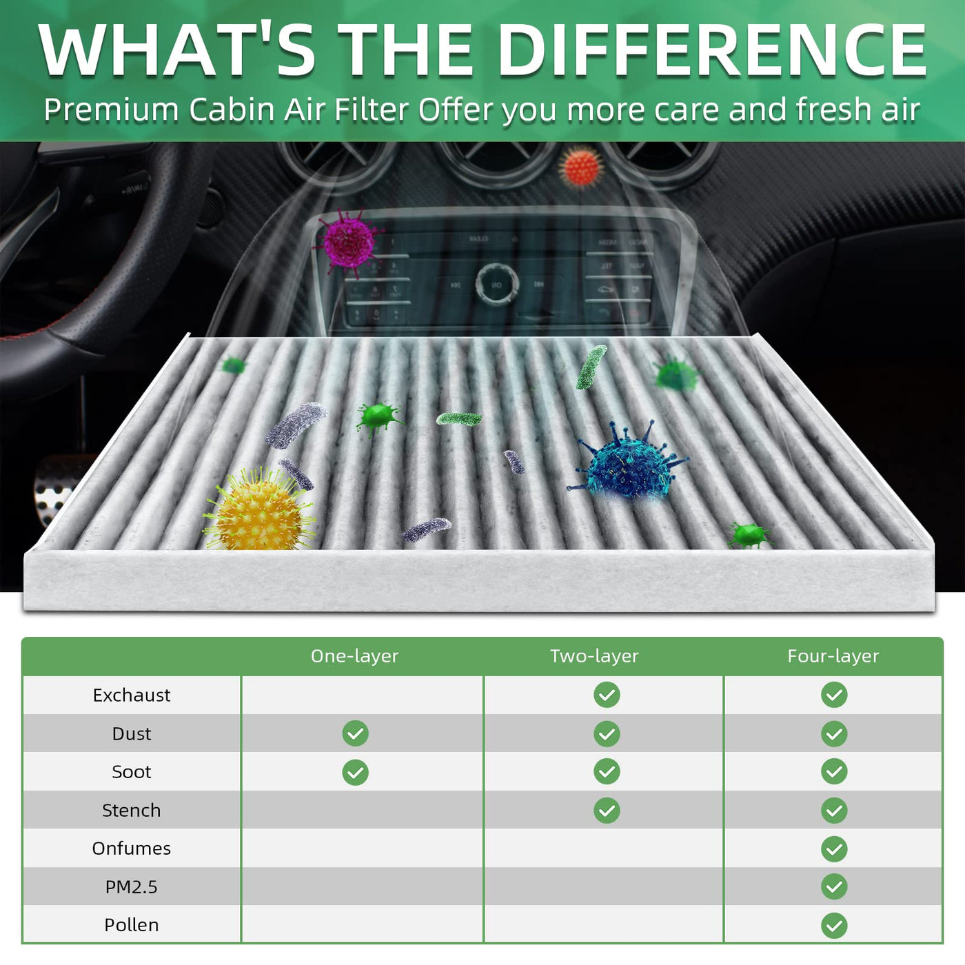 Q: What are the benefits of using an activated carbon cabin air filter?A: An activated carbon cabin air filter, like the CF11671, effectively traps harmful fine particles and dust, providing cleaner air inside your vehicle. This enhances respiratory health and ensures a more comfortable driving experience.
