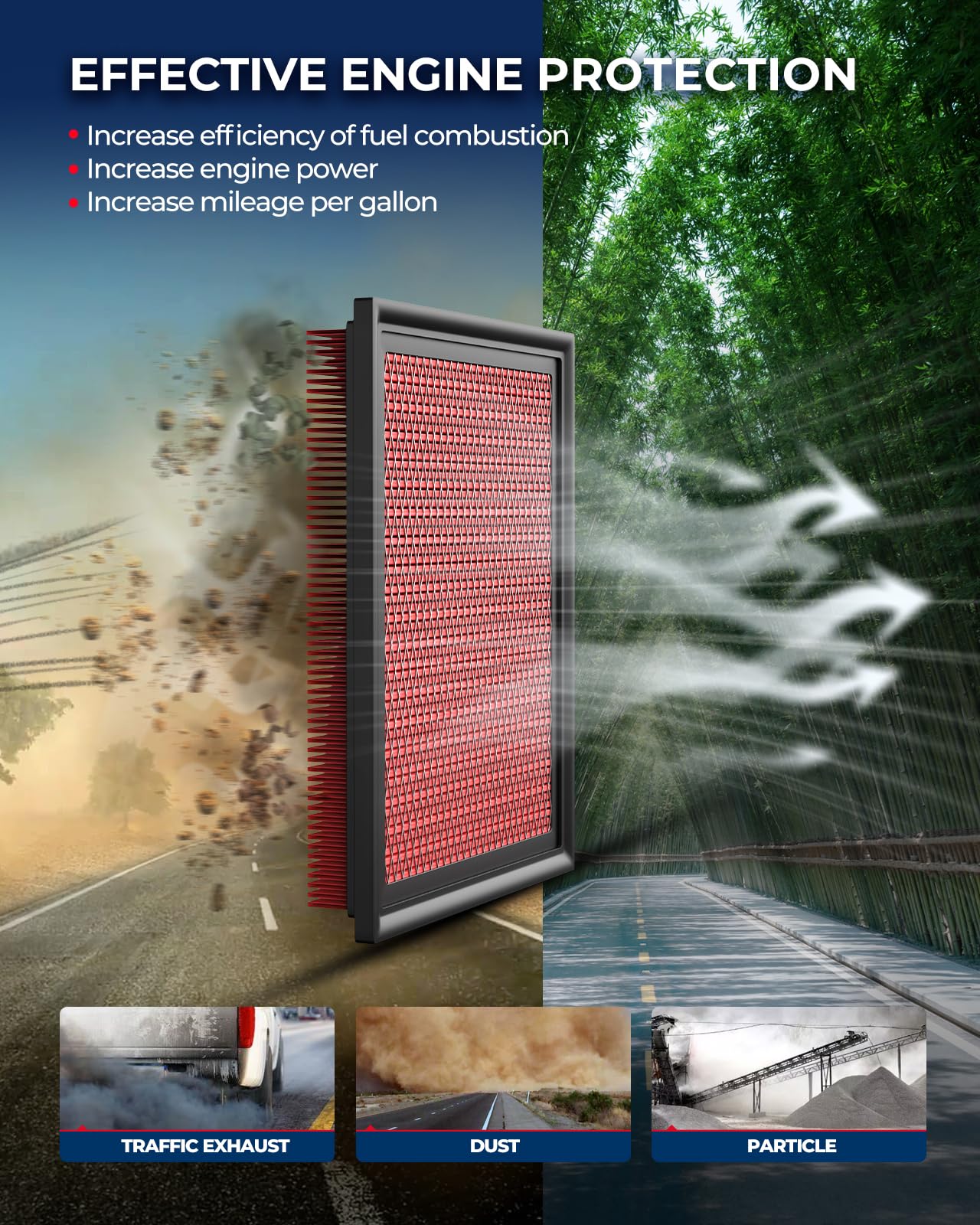 Compatible model: KAX GAF041 (CA9401) premium engine air filter replacement for Dodge Ram 1500 2002-2010, Ram 2500 2003-2010, Ram 3500 2002-2009; Compatible with Ram 1500 2011-2018 2020-2023, 2500 2011-2018, 3500 2011-2018, 1500 Classic 2019-2023 | 2X Lifetime of the Standard Air Filter: High performance filter materials and specialized manufacturing processes give KAX engine air filters a longer life. Mileage up to 20K Miles for less replacement | Keep Engine Peak Performance: 99.9% filtration efficiency - Filters air from fine particles including water droplets, dust, soot, pollen and sand, providing clean air to the engine and preventing premature wear to the engine and other internal components | 3X Protection: The KAX filter media made of special embossed paper, which has excellent crease stability and extra large dust holding capacity, maintaining good filtration performance even after a long period of use | Easy to Install: 1:1 OE design, can be installed directly in your factory air box, no special tools or modifications required