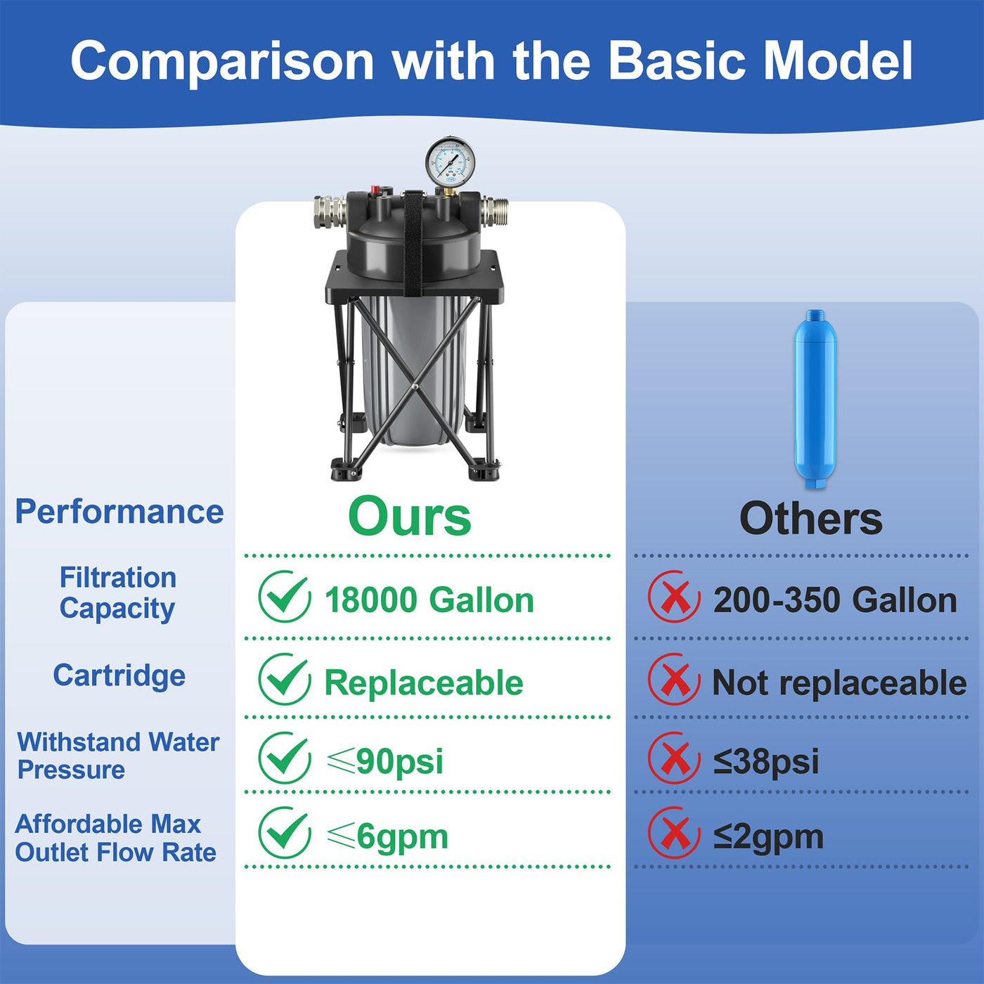 Kintim 6-Layer RV Water Filter with Stand and 0.5 Micron Filtration, 3/4'' GHT Metal Threads Garden Hose Water Filter, Reduces S