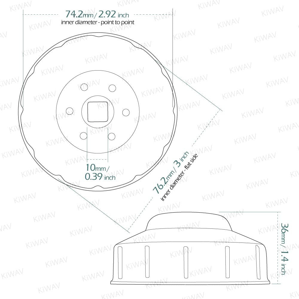 Q: What is the size and weight of the KiWAV Oil Filter Wrench?A: The KiWAV Oil Filter Wrench has a size of 76mm with 12 flutes and a net weight of 140 grams (0.2 lbs). Its compact size makes it easy to handle and store.