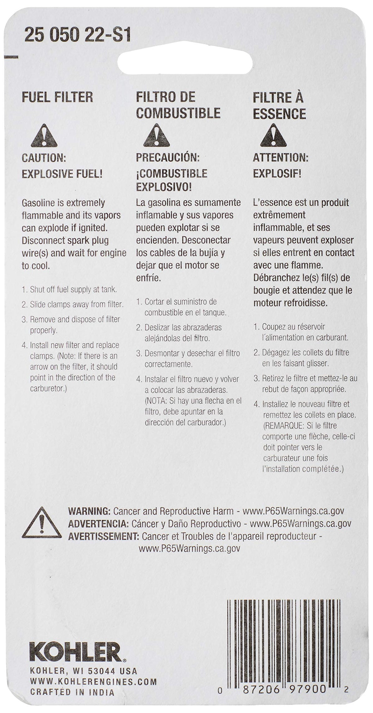 Kohler 25 050 22-S1 Engine Fuel Filter 51 Micron With 1/4-Inch Fuel Line Inside Diameter