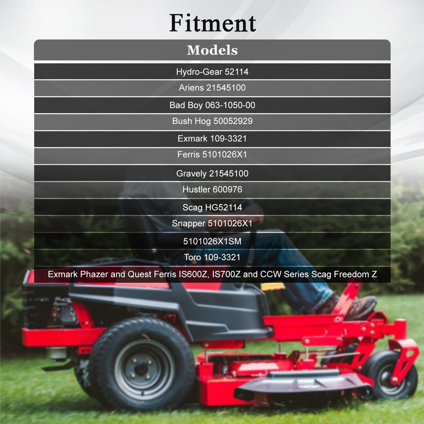 Q: Which models are compatible with the KPALAG oil filters?A: The KPALAG oil filters are compatible with several models, including Hydro-Gear 52114, Ariens 21545100, Bad Boy 063-1050-00, Bush Hog 50052929, Exmark 109-3321, and more. Refer to the product description for a full list of compatible models.