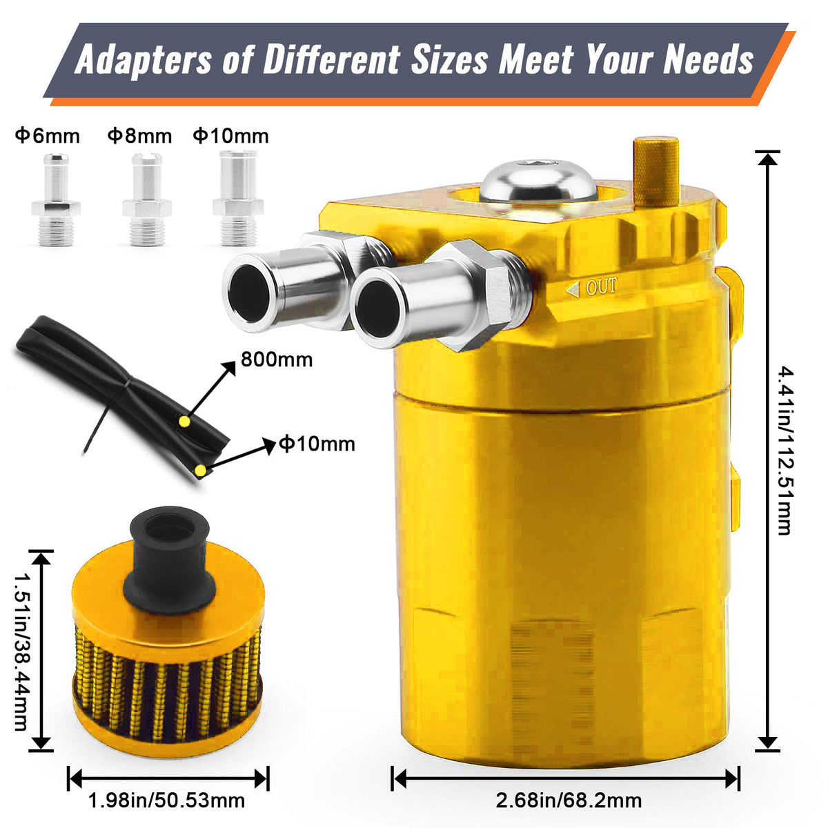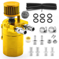 Muge Racing Universal Oil Catch Can Tank Kit Polish Baffled Reservoir With Breather Filter With 3/8'' Fuel Line, Aluminum, Gold,