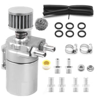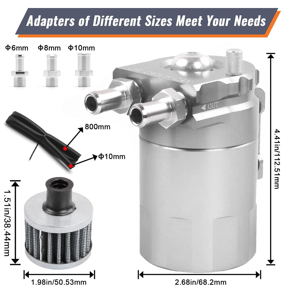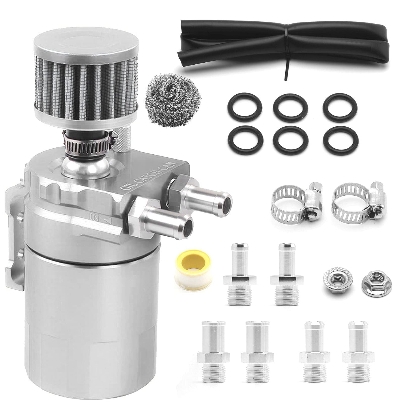 Muge Racing Universal Oil Catch Can Tank Kit Polish Baffled Reservoir With Breather Filter With 3/8'' Fuel Line, Aluminum, Silve