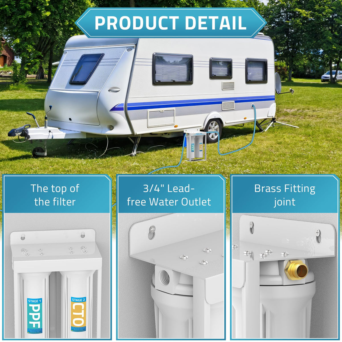 Paulinn External Rv Dual Water Filters System, Lead-Free & Bpa-Free Camper Water Filter With Brass Fittings & Mounting Bracket &