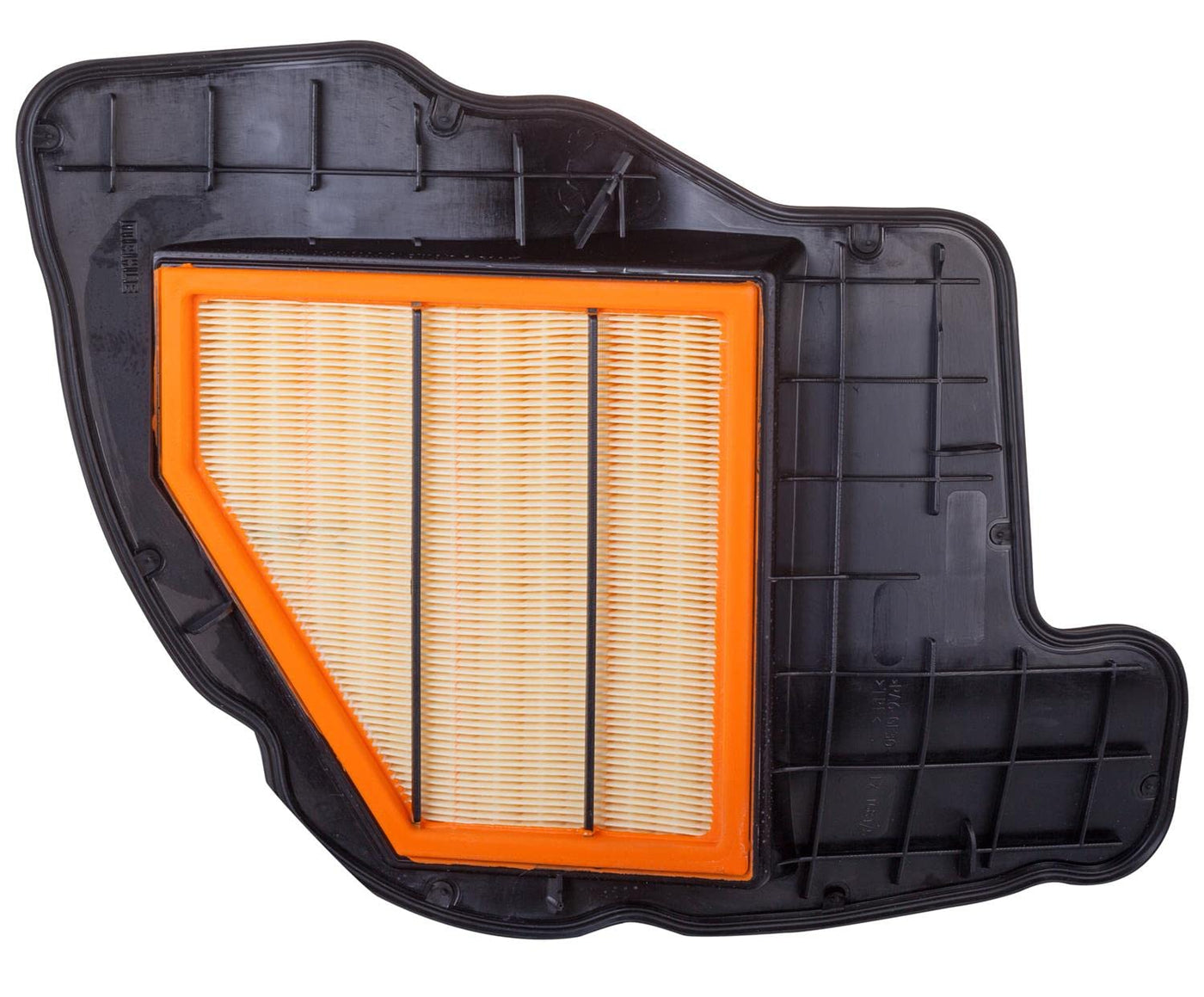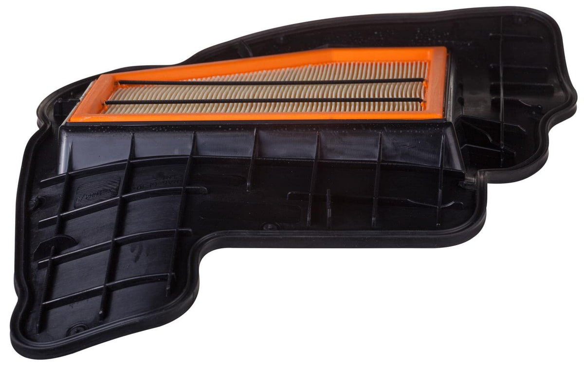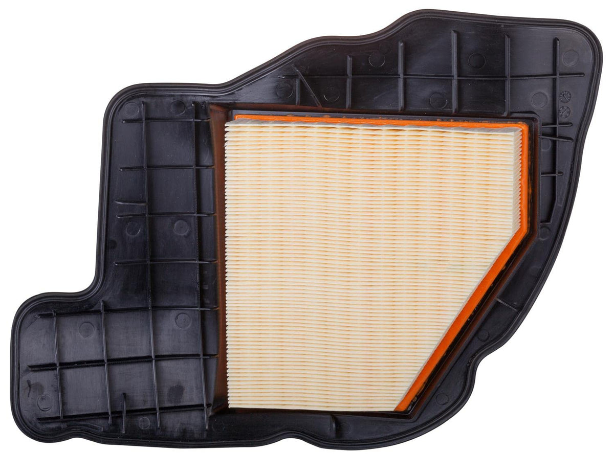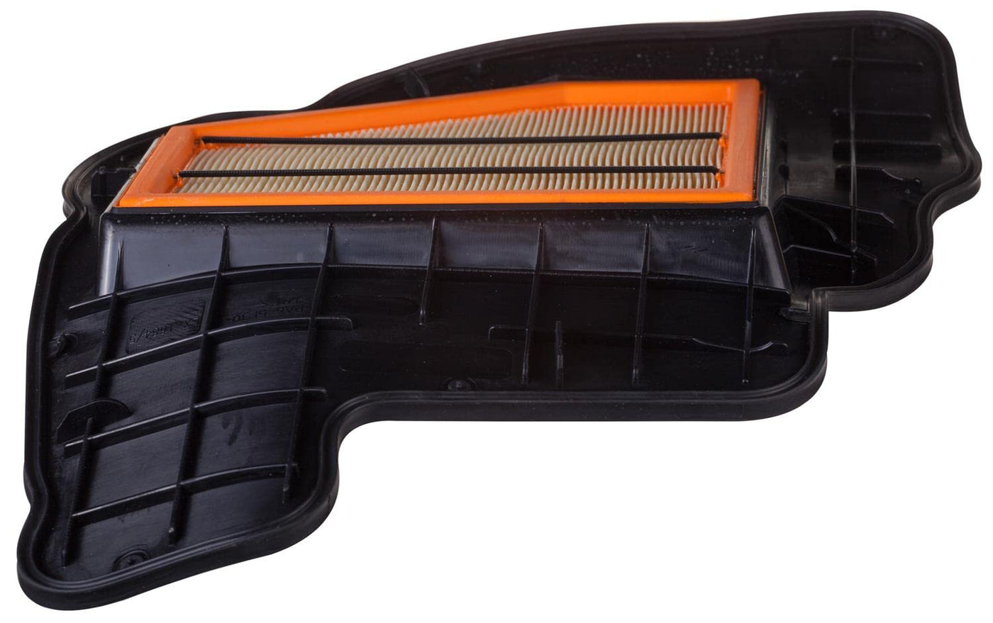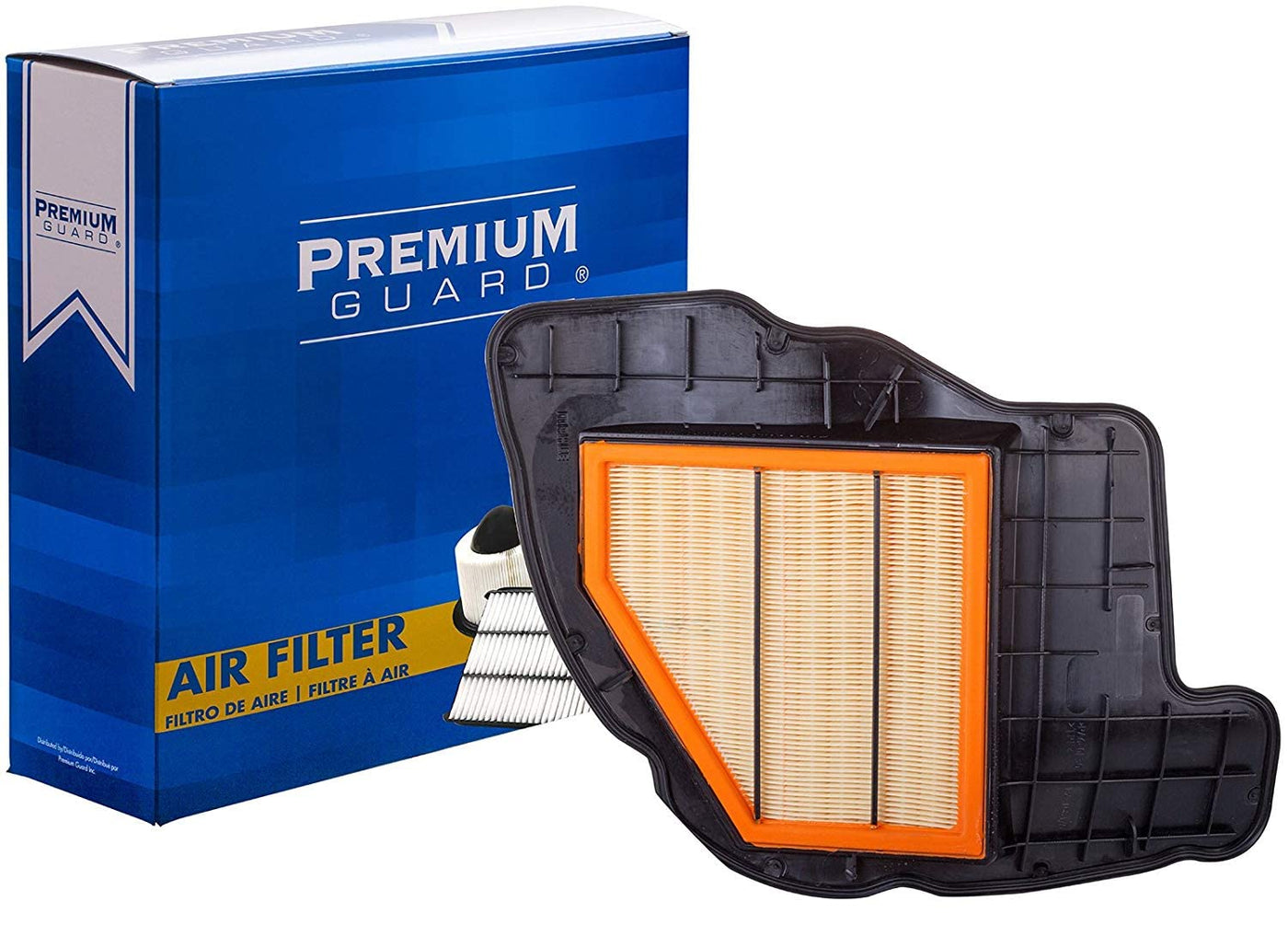 Q: How does the Premium Guard Air Filter improve engine performance?A: The Premium Guard Air Filter provides up to 99% filtration efficiency, removing harmful particles from incoming air. This ensures optimal airflow to the engine, which enhances performance and engine efficiency.