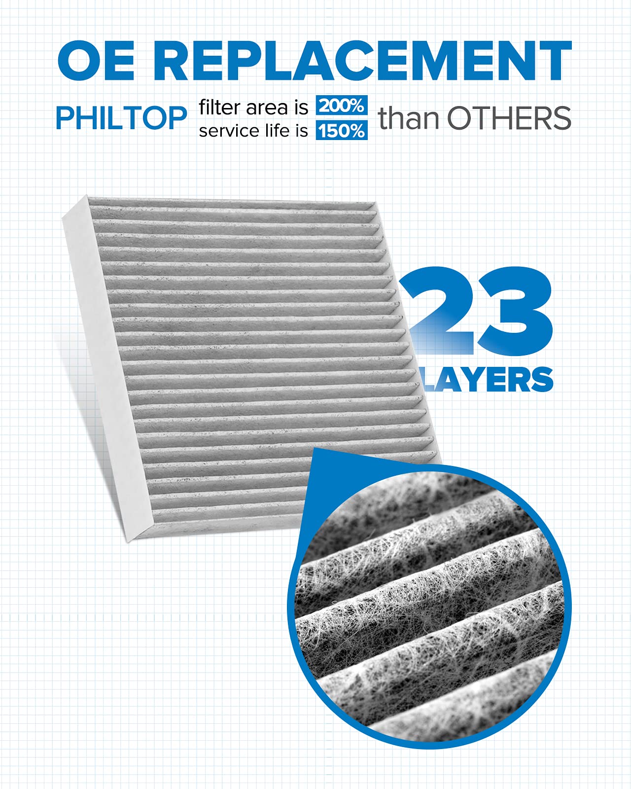 Triple Efficiency Filtration: PHILTOP cabin air filters are comprised of three layers that provide up to 99% filtration, which helps to keep dust, soot, pollen and other airborne contaminants from entering the vehicle | Enjoy Fresh Air: Activated carbon cabin air filter quickly adsorbs unpleasant odors from outside the ventilation system, provides a more comfortable interior environment for the driver and passengers without adding chemical odor neutralizer | Compatible Auto List: Replacement for Fit(2007-2008), BRZ(2013-2020), FR-S(2013-2016), 86(2017-2020) | Reference Part NO: 042-2045, 042-2083, CF1159, AFC1388, 80291-SAA-J01, CAF1851P, 4524, C25683, 72880-AJ010, SU003-02112, XC25863, HA-9, 800093P, 24524, CF10549 | Replacement Suggestion: To ensure that the air conditioning filter provides you with fresh air, recommended replacement 12,000 miles or as specified by the vehicle manufacturer.Please enter your vehicle's year/make/model to check the fitment