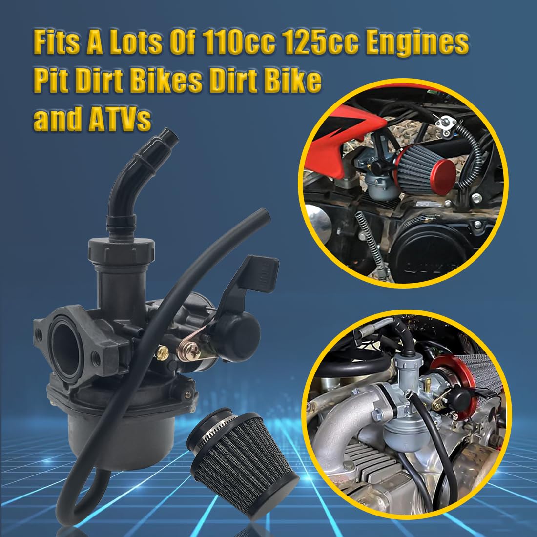 Q: How do I install the PZ22 Carburetor Air Filter Kit?A: Installation of the PZ22 Carburetor Air Filter Kit is straightforward. Simply replace your existing stock carburetor with the new one, ensuring that you properly align the air filter and inlet pipe manifold. Refer to the provided pictures for guidance and make sure to check compatibility with your existing setup.
