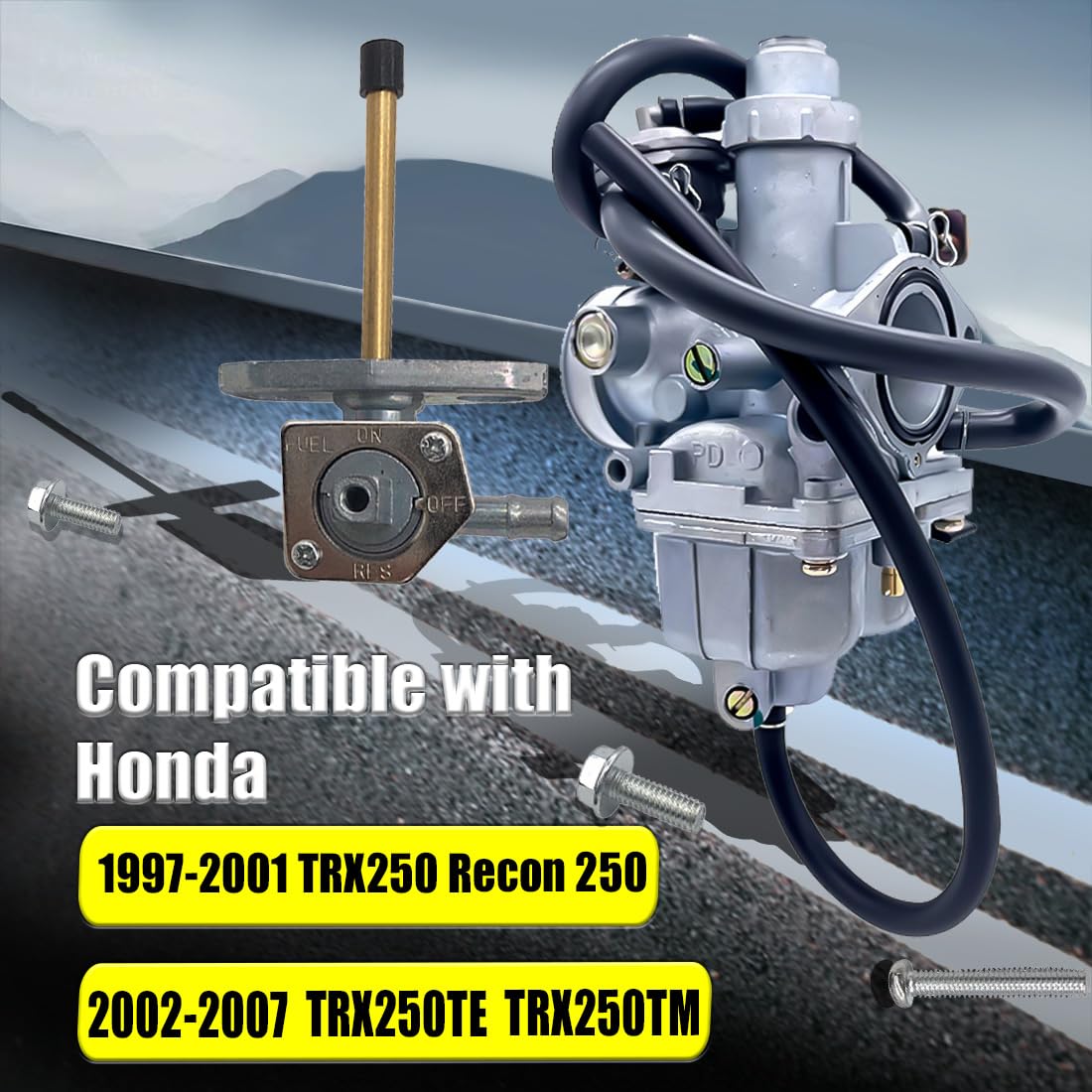 Recon 250 Carburetor with Fuel Tank Petcock Valve Set Fits for Honda TRX 250 Recon250 TRX250TM TRX250TE ATV Carb w/Air Filter Oi