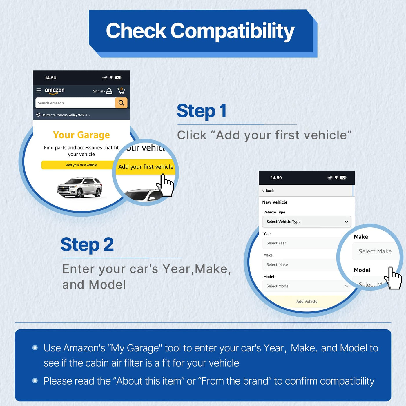 Breath Fresh Breeze Feature advanced filter technology to remove dust and solid matter, holding them well away from the vehicle interior where they cannot be breathed in. The result is a cabin atmosphere that always stays fresh, pleasant and healthy to breathe. Keeps your vehicle interior clean and ensures a healthier in-car environment. Warm Tips: 1. Recommended replacement every 12 months or 12,000 miles. 7. Please check whether the cabin air filter fits your car or not before purchasing.
