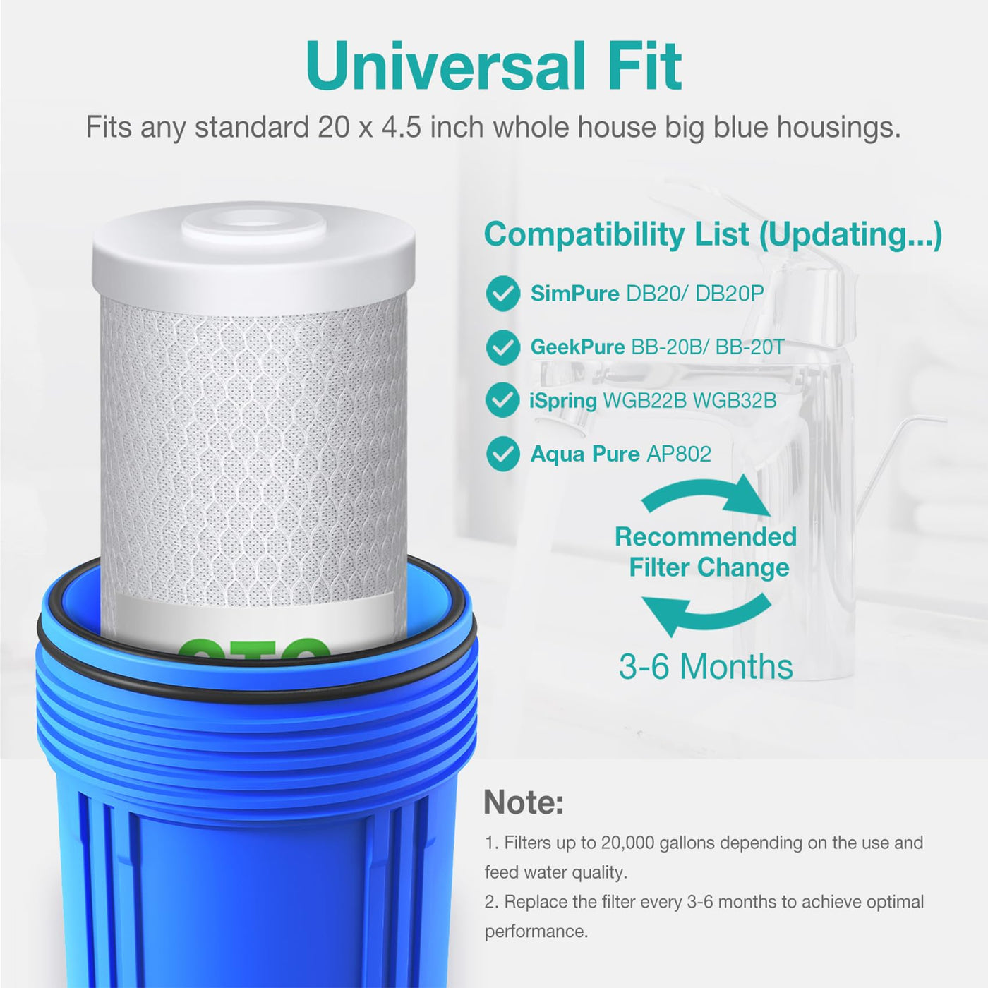 Simpure Whole House Water Filter, 20'' X 4.5'' Bb Activated Carbon Block Filter Replacement Cartridge Coconut Cto Filter (6 Pack