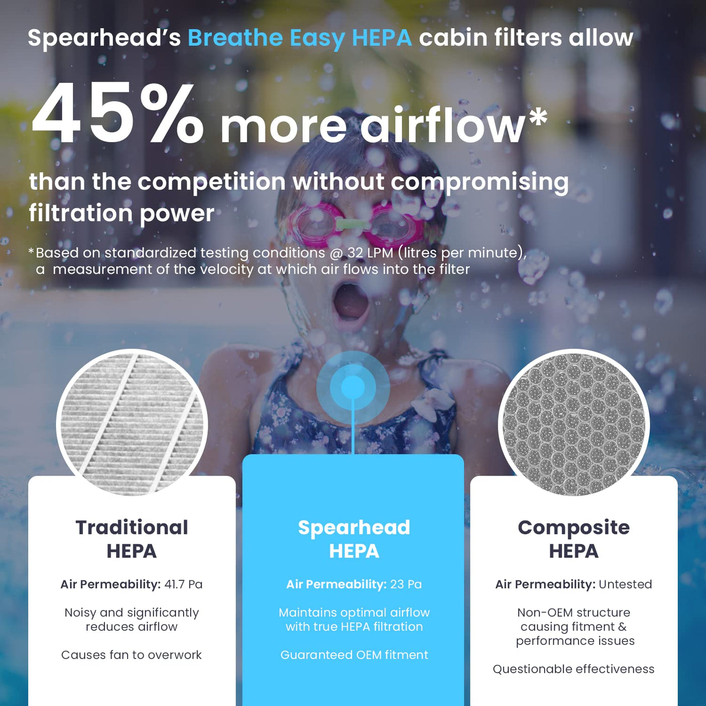 Spearhead Hepa Breathe Easy Cabin Filter, Up To 99.97% Filtration Of 0.3 Micron Particles W/No Airflow Reduction (Be-374H)