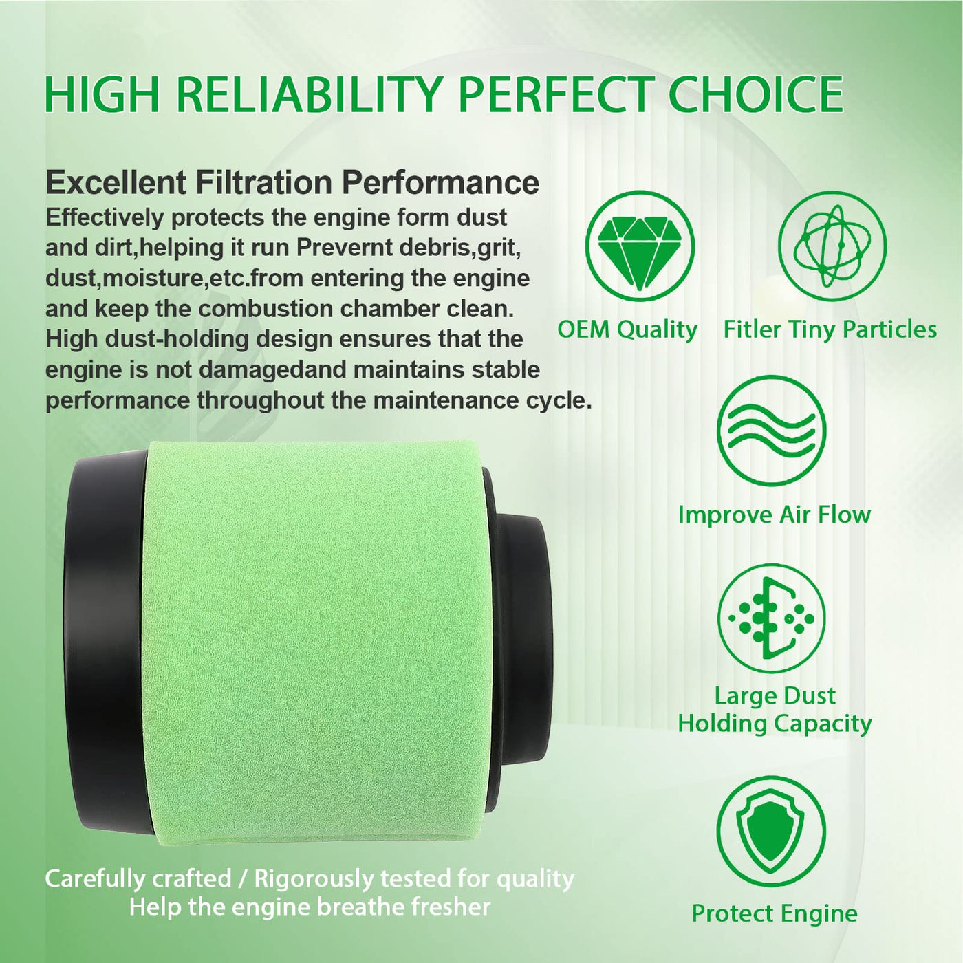 Q: How does the foam material of this air filter benefit engine performance?A: The foam material used in the Trail Boss 325 330 Air Filter provides high intake efficiency, which can improve engine power. This design helps ensure that your engine receives adequate airflow while filtering out impurities effectively.