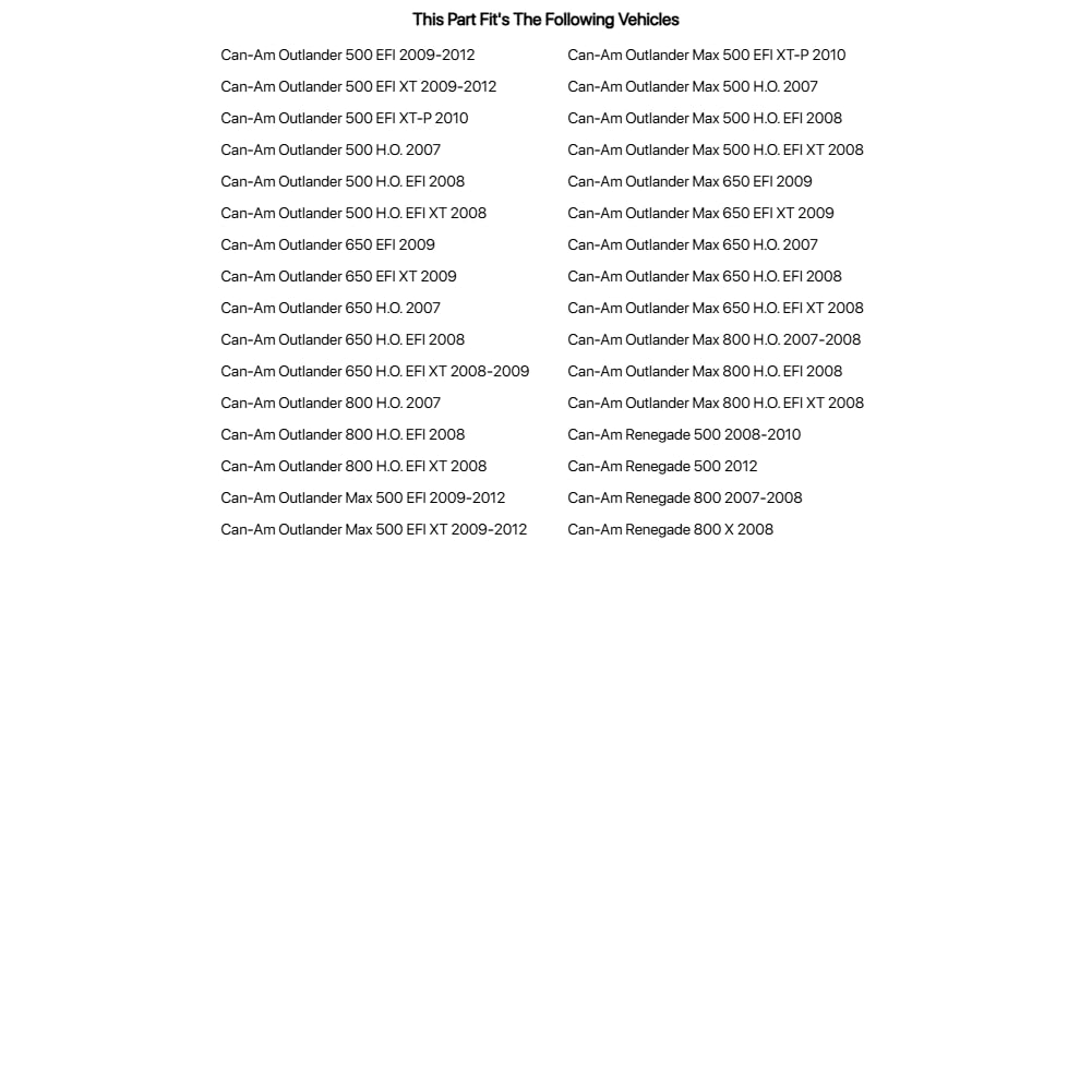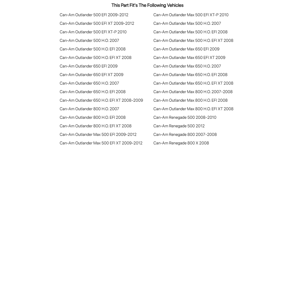 Uses a special backfire-resistant layer of foam laminated to the inside of the filter. Dual foam design: Coarse open-pore foam catches airborne dirt, grime and sand, fine open-pore inner foam acts as a second filter to trap the smallest particles while ensuring maximum air passage. Thick, flat foam, greaseless sealing ring ensures maximum contact with your air box, while acting as a breathable gasket for increased air passage. Fused outer and inner elements prevent dirt and grime from being lodged between layers while the exclusively formulated adhesive ensures glue seams will not break down. Fits: Bombardier/Can-Am Renegade 500 08-12, Outlander 500 07-12, Outlander 650 07-09, Outlander 800 06-08, Renegade 800 07-08.