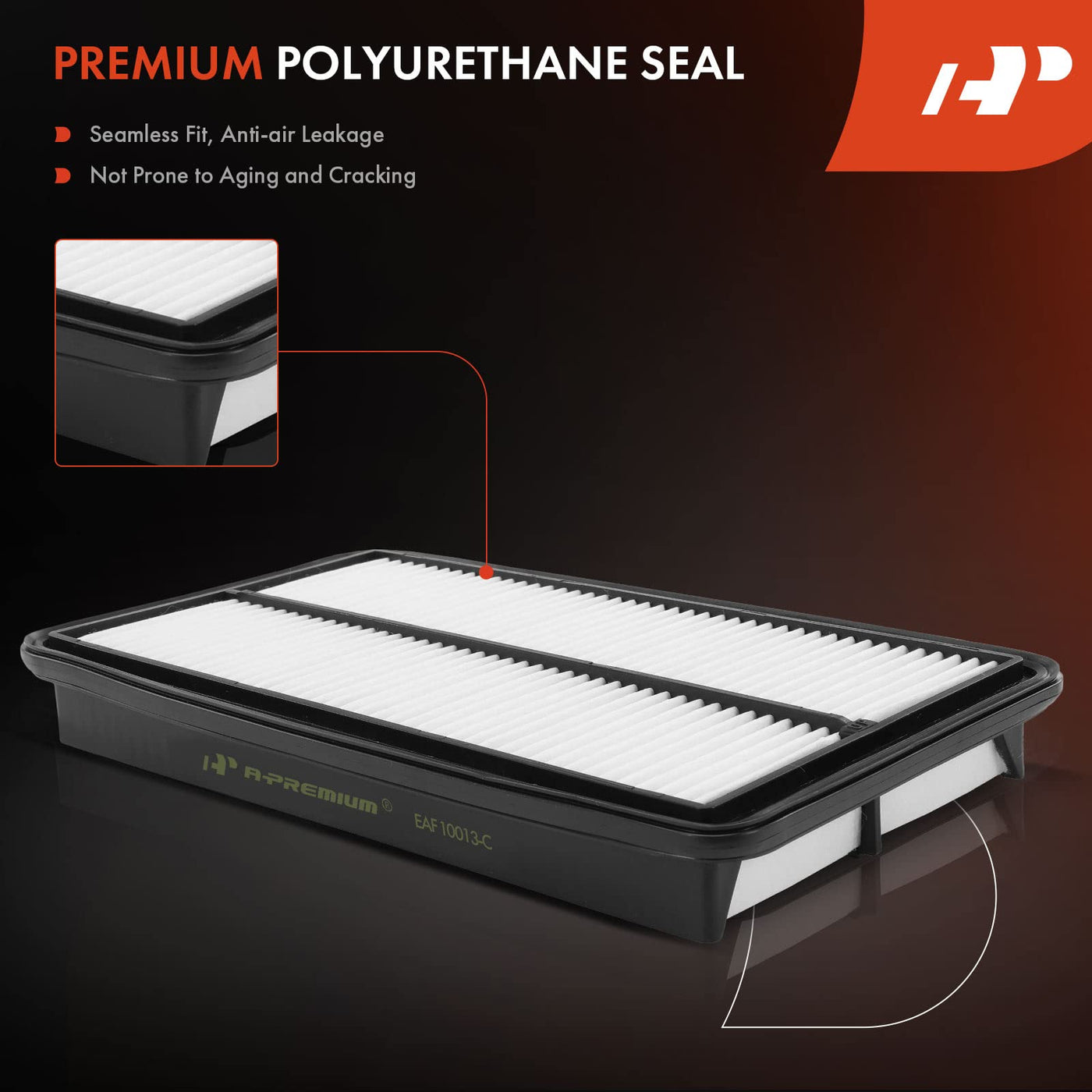 Q: Does the A-Premium Engine Air Filter improve engine performance?A: Yes, the A-Premium Engine Air Filter uses fine filtration media to capture debris without obstructing airflow, which helps in improving engine performance and increasing overall engine efficiency.