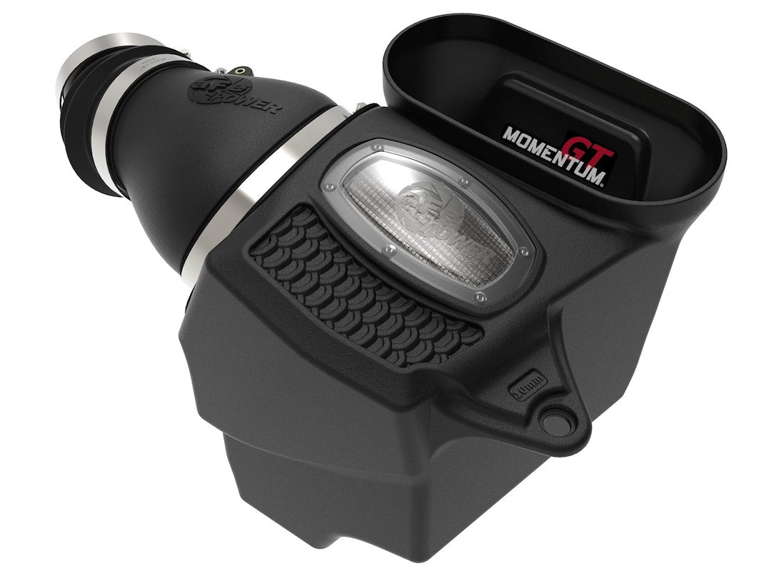 Q: What makes the aFe Power Momentum GT Cold Air Intake System unique?A: The aFe Power Momentum GT Cold Air Intake System is designed with a unique filter-to-housing interface that allows for the largest air filter possible. Its 8” tall radial flow air filter utilizes oil-free Pro DRY S media, providing exceptional filtration efficiency without the need for oils, making it ideal for street use.