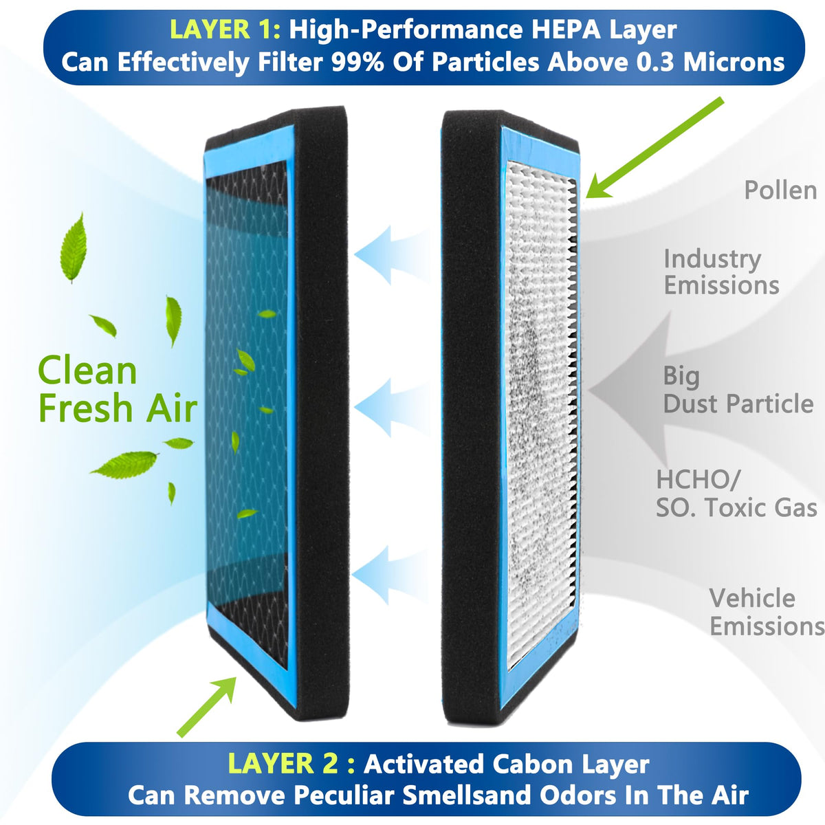 Q: What materials are used in the CF10374 Cabin Air Filter?A: The CF10374 Cabin Air Filter is made from activated carbon, paper, and nonwoven materials. This combination helps to effectively filter out dust, pollen, and other airborne contaminants.