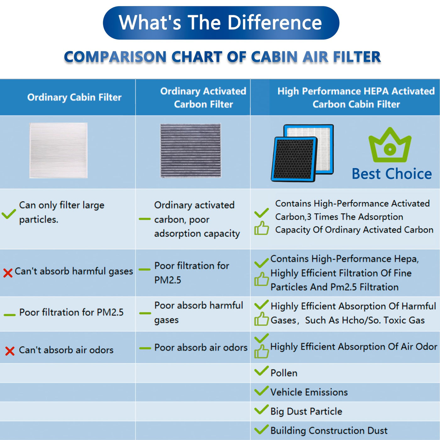 Q: How often should I replace my cabin air filter?A: It is recommended to replace your cabin air filter every 12,000 to 15,000 miles or once a year, depending on driving conditions. Regular replacement ensures optimal air quality in your vehicle.
