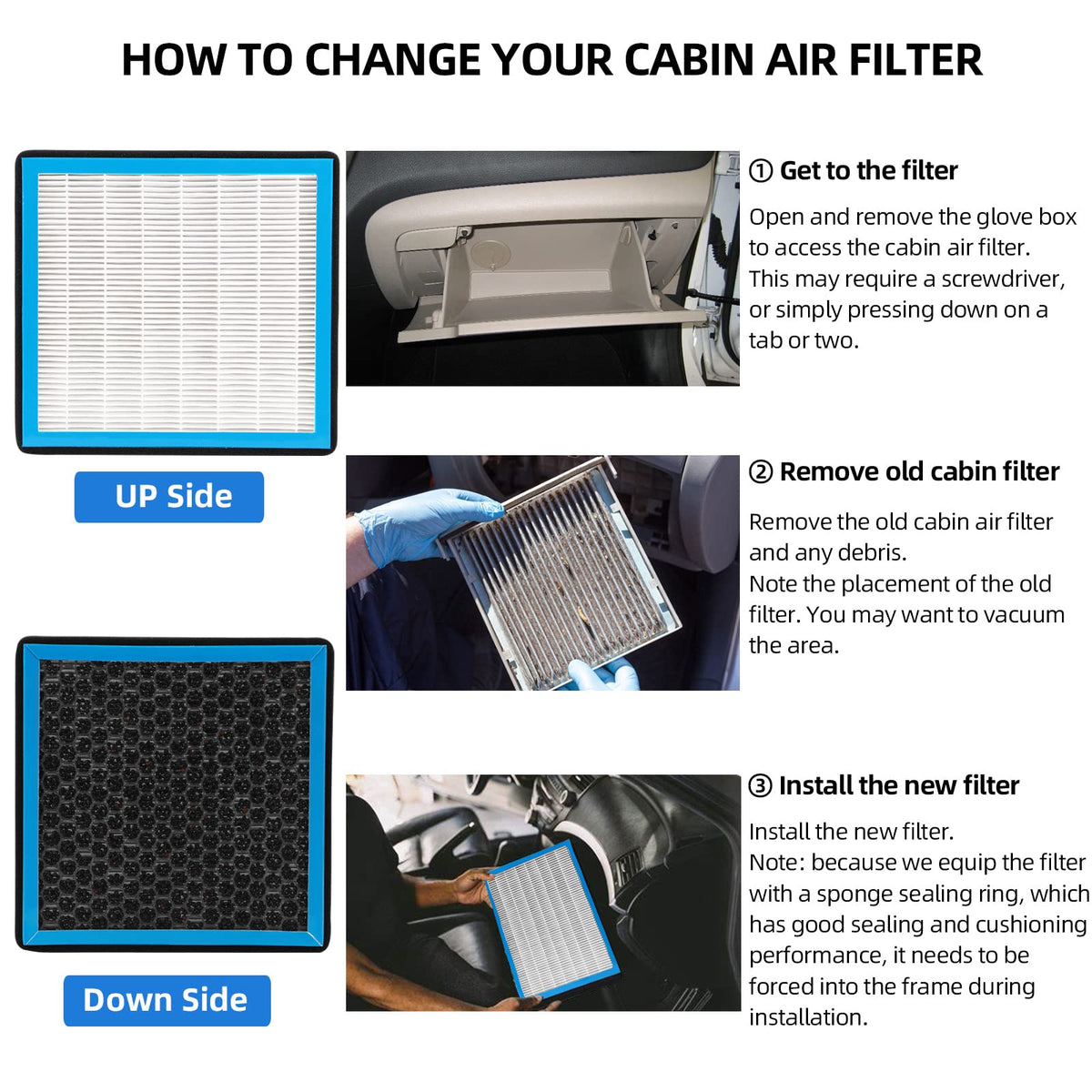 Q: How often should I replace my cabin air filter?A: It is generally recommended to replace your cabin air filter every 12,000 to 15,000 miles or once a year, but this can vary based on driving conditions. If you frequently drive in dusty environments or have allergies, you may want to replace it more often to ensure optimal air quality inside your vehicle.