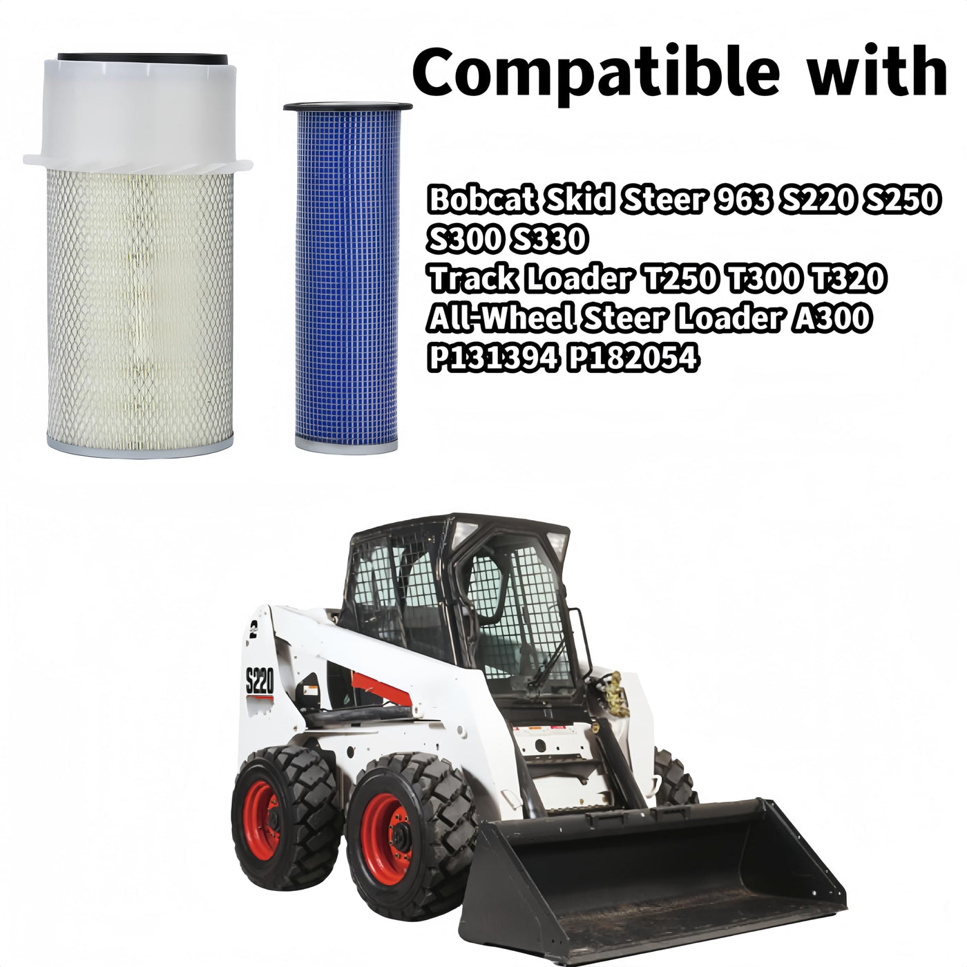 Fltrucktop 6681474 6681475 Air Filter Set Compatible With Bobcat Skid Steer 963 S220 S250 S300 S330 Track Loader T250 T300 T320 All-Wheel Steer Loader A300 Replaces Donaldson P131394 P182054