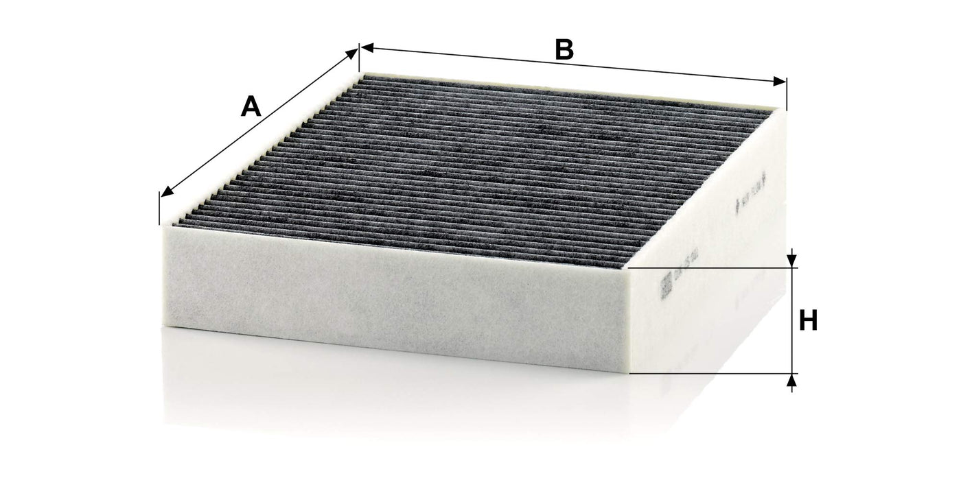 Cabin Air Filters With Activated Carbon From Mann-Filter Stop Nearly 100% Of Even The Tiniest Undesired Particles From Entering The Vehicle Through The Ventilation System. Mann-Filter Activated Carbon Cabin Air Filters Meet The High-Performance Requirements Demanded By Oe Manufacturers. The Premium Activated Carbon Layer Captures Harmful Gases And Eliminates Unpleasant Odors. Replace Every 12 Months For Optimum Performance - Or More Frequently In Harsh Or Dusty Environments. Mann-Filter - Perfect Parts. Perfect Service. As A Trusted Automotive Supplier With Global Reach, Mann+Hummel Offers A Wide Range Of Mann-Filter Products In Original Equipment (Oe) Quality For European Applications.