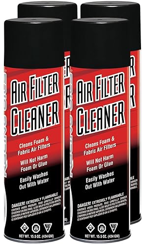Maxima Air Filter Cleaner is a ready to use, heavy-duty emulsion-type cleaner. Designed to thoroughly clean both foam and fabric air filters without damaging foam cells, paper or glue. Maxima Air Filter Cleaner will remove oil and dirt from air filter elements and easily washes out with water. For use with petroleum based oils. Rated #1 by Dirt Rider magazine. 4-Pack Contains a total of 4, 15.5 Ounce Aerosol Cans.