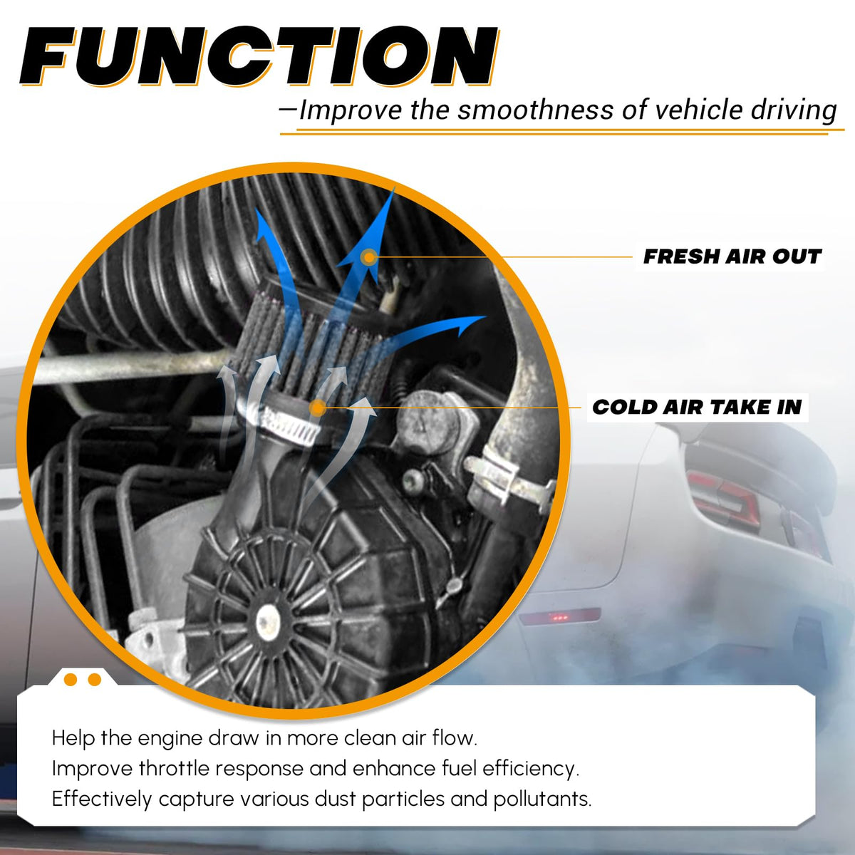 Ptnhz Universal Black Neck 1.5'' 38Mm Car High Flow Cold Air Intake Air Filter Power Intake Air Inlet System Air Cleaner