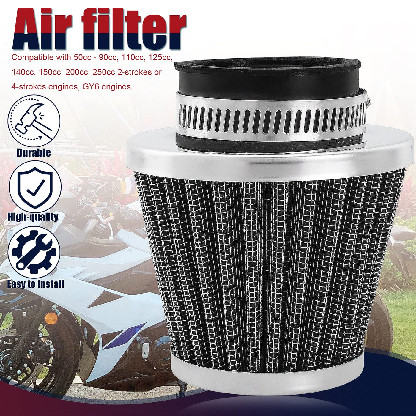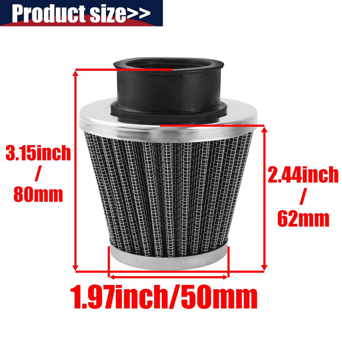 Features:? 1. Made Of High Quality Materials, The Filter Is Durable In Use For A Long Time, Washable No Oil Design. 2. Comes With Clamp For Easy Use And Adjusting. 3. Easy To Fit, Can Be Secured Tightly Onto Your Vehicle Pipe, And You Can Adjust To The Size Required With Flat Head Screwdriver. 4. The Filter Prevents Abrasive Particulate Matter From Entering The Engine'S Cylinders To Ultimately Increase Horsepower, Torque And Improve The Gas Mileage. 5. It Will Allow Your Bike To Do Deep Breath And Generate Much More Power, Prolong The Engine Life.