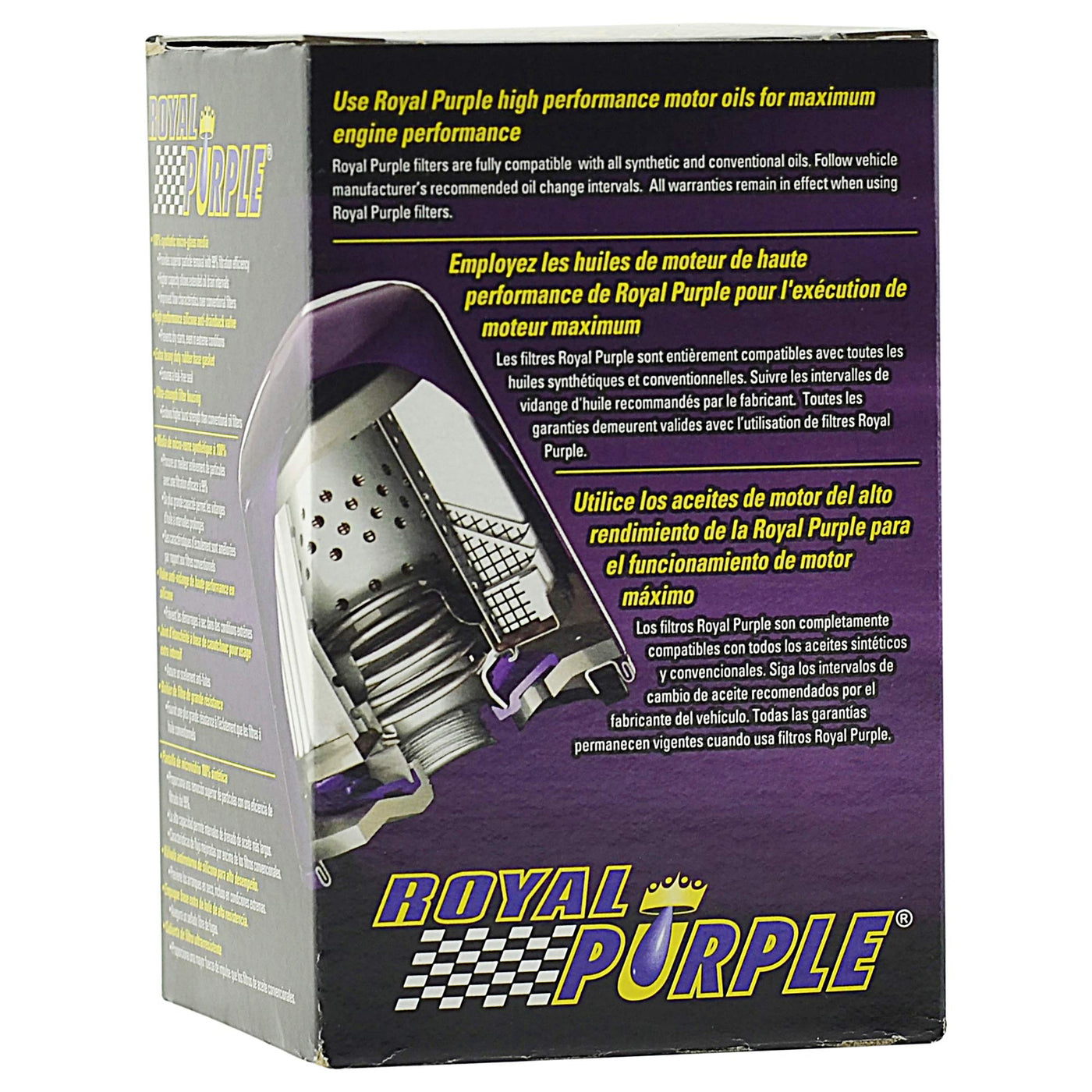 Royal Purple Oil Filter Features 100 Percentage Synthetic Micro-Glass Media For Superior Particle Removal With 99 Percentage Filtration Efficiency At 25 Microns. This Product Is Designed With A High-Performance Silicone Anti-Drain Back Valve That Prevents Dry Starts, Even In Extreme Conditions And An Extra Heavy-Duty Rubber Base Gasket That Ensures A Leak-Free Seal. The Royal Purple Oil Filter Also Provides An Ultra-Strength Filter Housing That Can Endure Higher Burst Strength Than Conventional Filters. Royal Purple Filters Are Fully Compatible With All Synthetic And Conventional Oils, Provide Superior Particle Removal, High-Performance, Optimized Flow Characteristics For Maximum Performance, And Longer Filter Life.