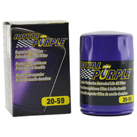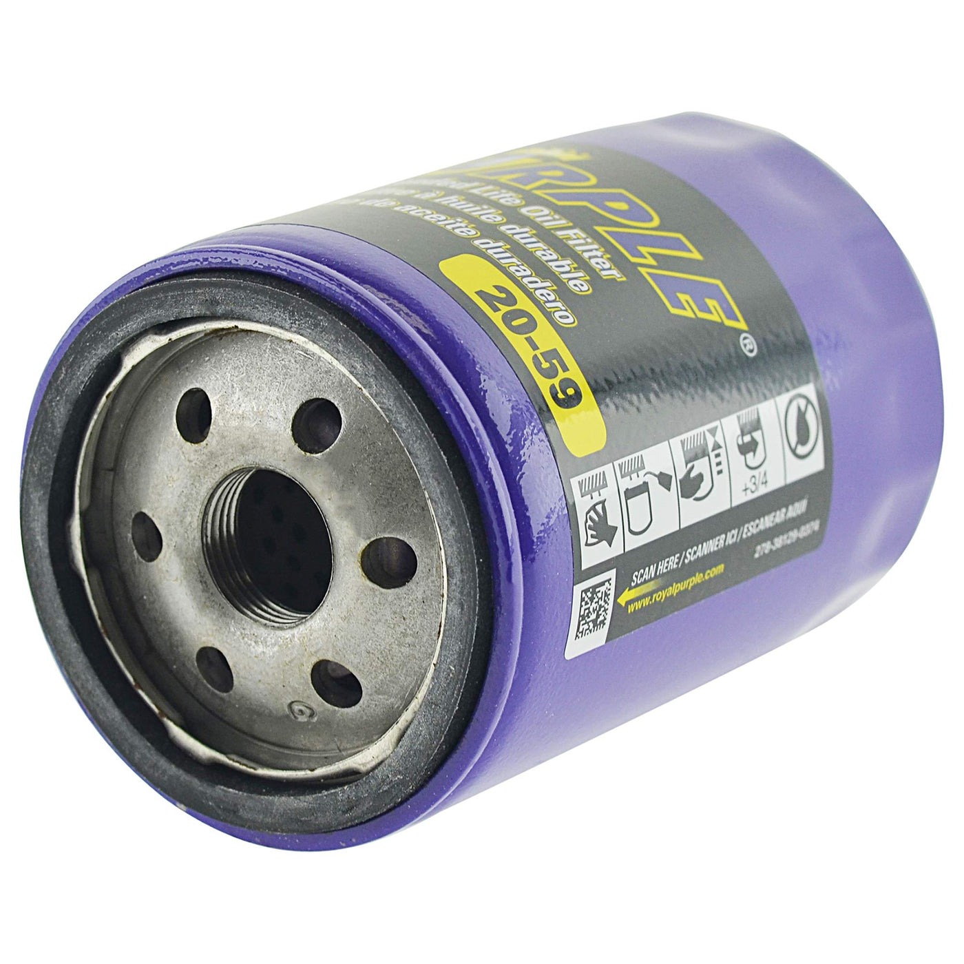 Q: What makes the Royal Purple 20-59 Oil Filter different from other oil filters?A: The Royal Purple 20-59 Oil Filter features 100% synthetic micro-glass media, providing superior particle removal with 99% filtration efficiency at 25 microns. It also has a high-performance silicone anti-drain back valve, ensuring no dry starts even under extreme conditions.