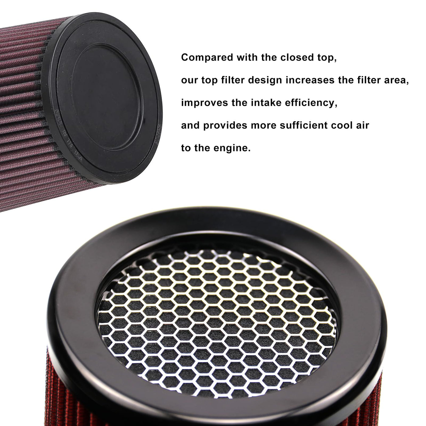 Description: [Universal] Designed to increase horsepower and acceleration. [Installation] Adjustable diameter size, easy to install. [Unique style] Clamp-on washable and reusable air filter, protecting engine. [Quality] High air flow with excellent filtration. [Features] Two-layered mesh material, reusable and washable, stainless steel clamp included. Material: Filter paper Color: red Weight:0.450kg Note: Please allow 1-3CM differs due to manual measurement. Due to the different display and different light, the picture may not reflect the actual color of the item. Thanks for your understanding Please tell us first when you have any problem, we will give you the best service and solve the problem ASAP. Thank you so much. This product is designed and tested to provide the highest degree of performance and usability- under extreme conditions- for demanding users. Thank you for supporting our small busines