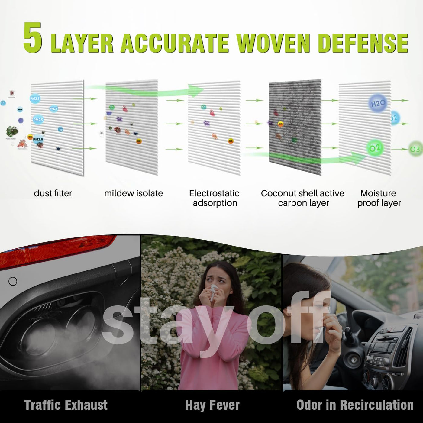 1.Replacement for 2013-2018 Altima, 2016-2023 Maxima, 2015-2024 Murano, 2013-2020 Pathfinder,2013 JX35, 2014-2020 QX60,fit for 27277-3JC1A, 27277-3JC1B, 27277-3JC1C, 27277-3JC2A, 27277-9NM0A, CF11776, XC10020, CF3290, CF-263, CAF1903C, CAF1903C, CAF1903P, PCF11776, C48162, CAF1903, CAF1903P 2.Crafted from upgraded coconut shell, our cabin air filter purifies cabin air naturally. Enjoy a breath of fresh, eco-conscious air every drive.Utilizing coconut shell's natural porosity, our filter traps tiny particles, ensuring cleaner air for a healthier ride. 3.Our cabin air filter maintains HVAC system efficiency. Replace it every 15,000 miles to prevent clogs and ensure smooth airflow or keep your cabin air pure by replacing the filter every 3-6 months. 4.Cabin air filter is kind of consumable as dust and dirt will accumulate on the inlet surface, leading to a decline in filtering efficiency over extended use. Due to varying usage scenarios, the specific timing for replacement differs.