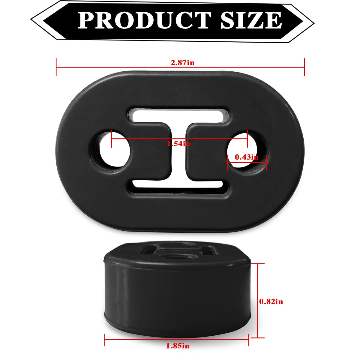 Q: What is the function of the 2Pcs Exhaust Hanger Rubber?A: The 2Pcs Exhaust Hanger Rubber is designed to suspend the exhaust pipe from the chassis, effectively absorbing vibrations to ensure a quiet exhaust system without rattling.