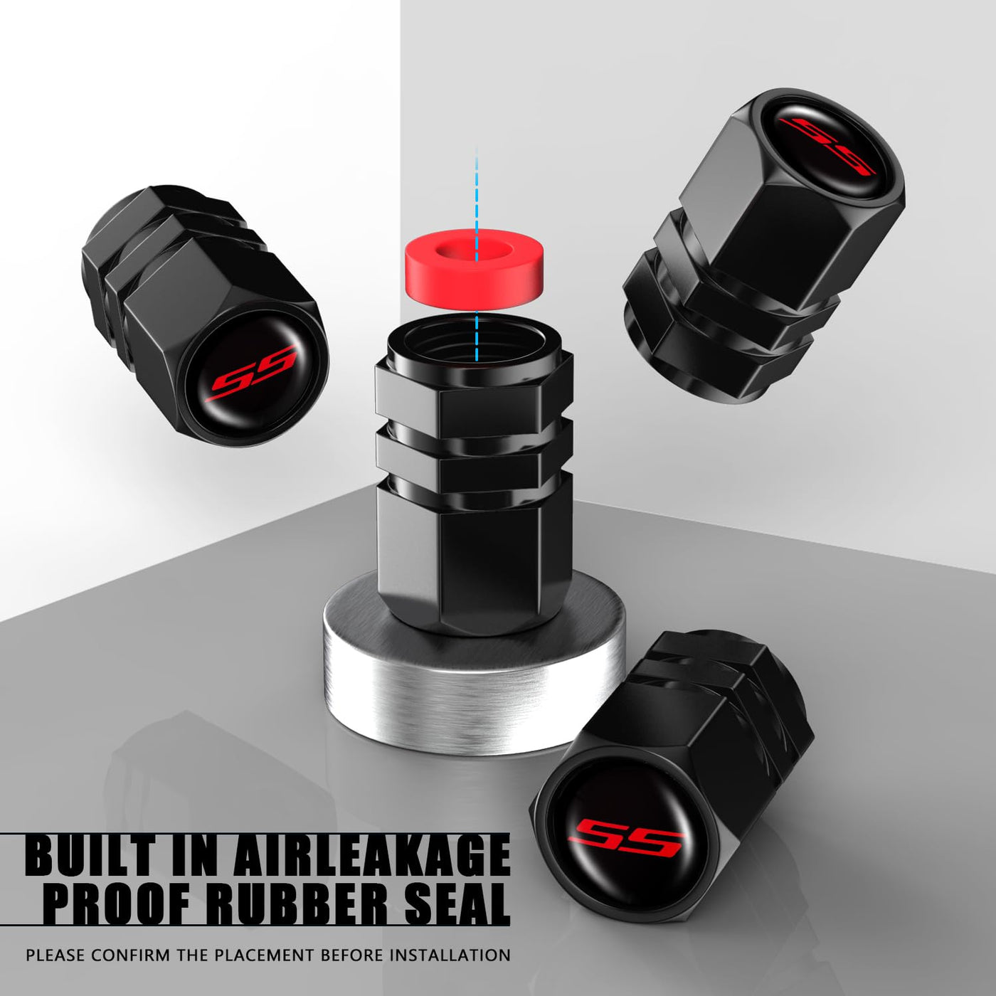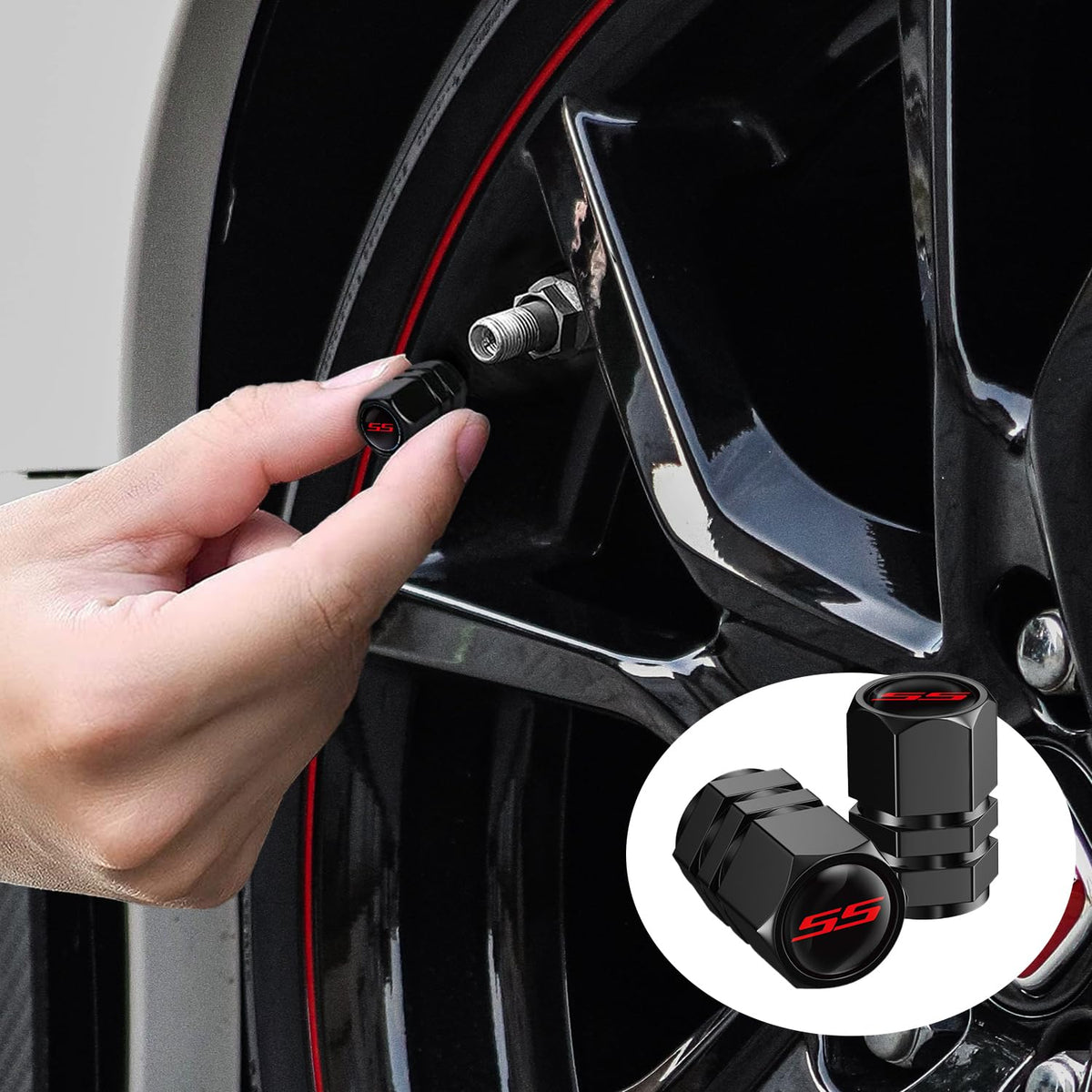 Annloysky 4Pcs Tire Valve Stem Caps Compatible With Chevy Camaro Ss Auto Accessories, Aluminum Tire Valve Cap Set, Corrosion Res