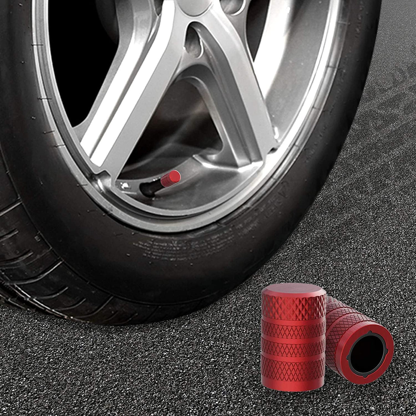 Ckauto Tire Valve Stem Caps, Red, 10 Pcs/Pack, Anodized Aluminum Tire Cap Set, Corrosion Resistant, Universal Stem Covers For Ca
