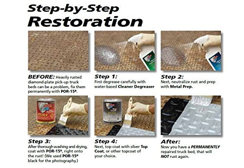POR-15 Rust Preventive Coating is the Only Product that REALLY Stops Rust Permanently! POR-15 Rust Preventive Coating is designed for application directly on prepped rusted, sandblasted, and seasoned metal surfaces. It dries to a rock-hard, non-porous finish that wont chip, crack, or peel, and it prevents rust from recurring by protecting metal from further exposure to moisture. POR-15 Rust Preventive Coating is sensitive to UV light and must be top coated when prolonged exposure to sunlight is possible. Top coating is not required for areas not exposed to sunlight.