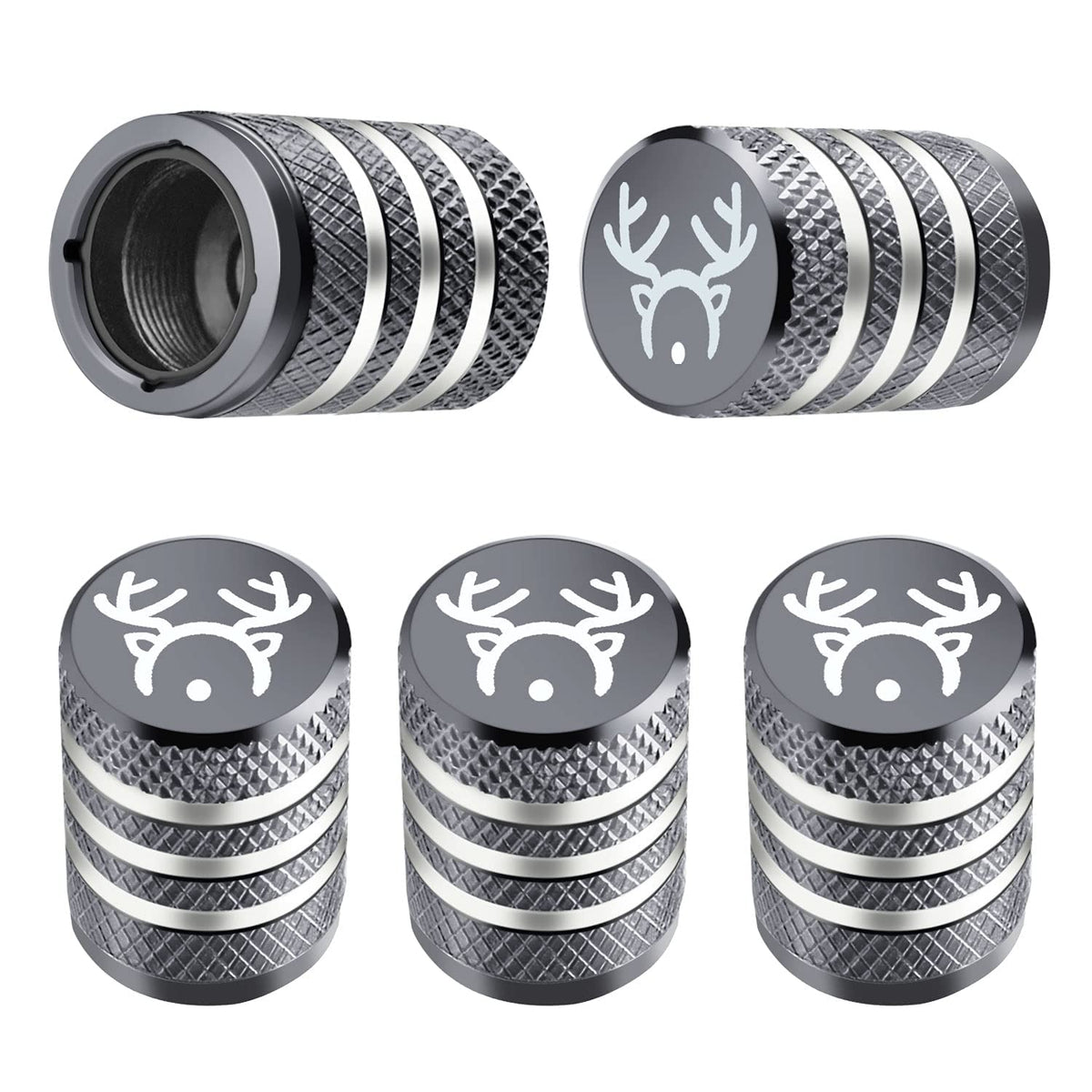 Tire Valve Stem Cap Cover - (5 Pack) Tire Air Cap Corrosion Christmas Reindeer Antler Antlers Auto Accessories Decoration For Car Truck Bike Grey