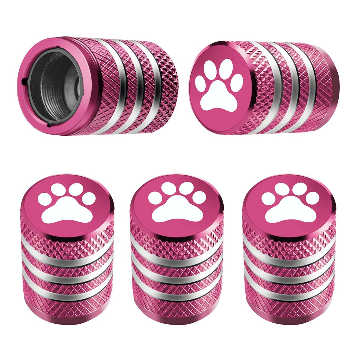 Tire Valve Stem Cap Cover - (5 Pack) Tire Air Caps Metal with Plastic Liner Corrosion Resistant Leak-Proof Cat/Dog Paw for Car Truck Motorcycle Bike Pink