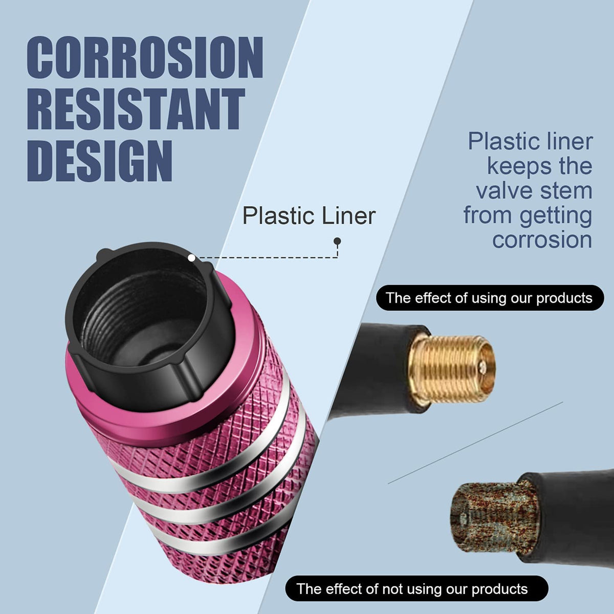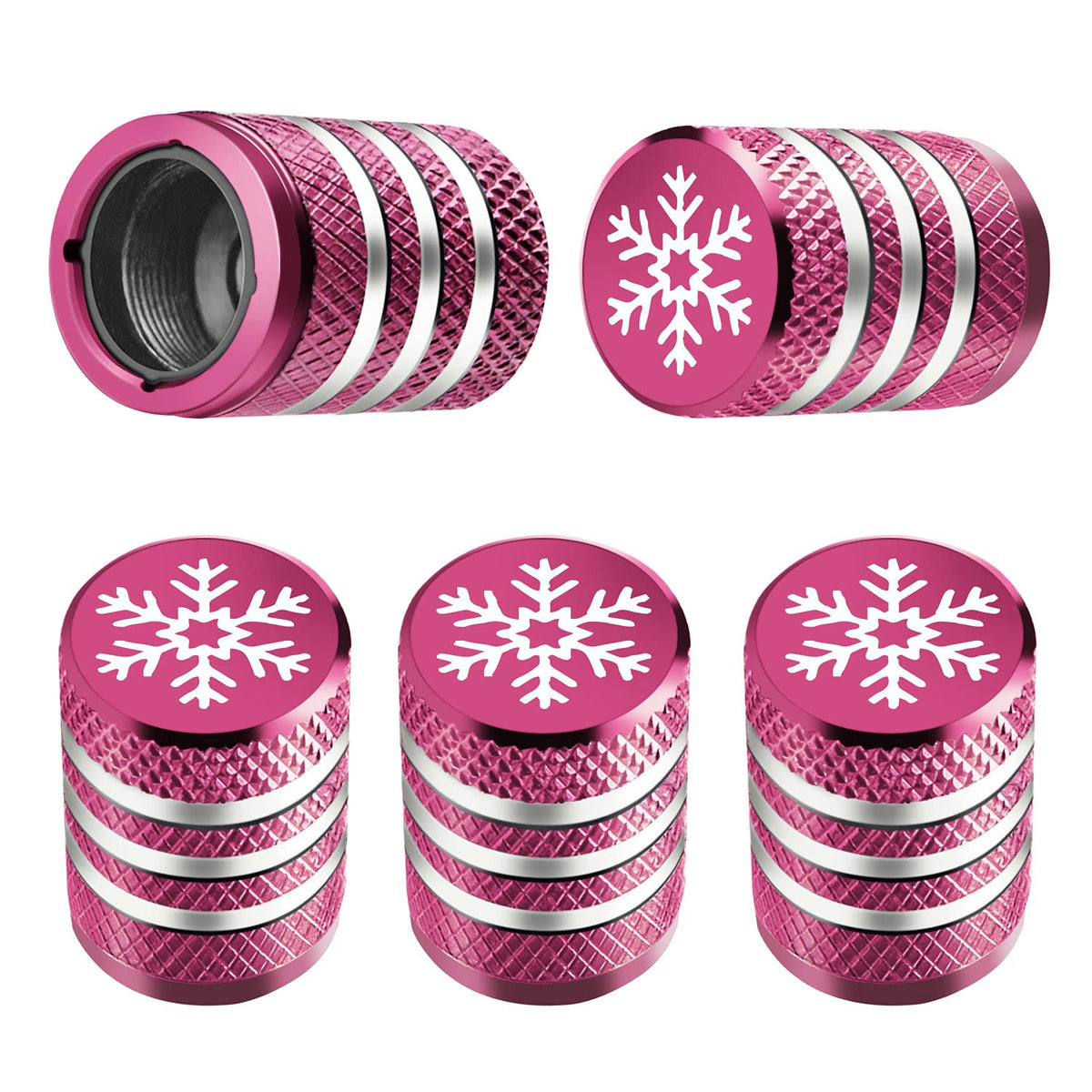 Tire Valve Stem Cap Cover - (5 Pack) Tire Air Caps Metal With Plastic Liner Corrosion Resistant Leak-Proof Snow Snowflake For Car Motorcycle Bike Pink