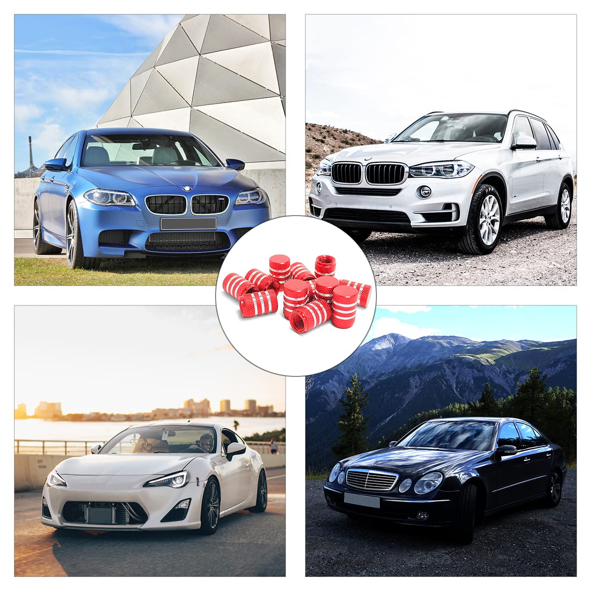 Q: Are these tire valve stem caps compatible with all vehicles?A: Yes, these tire valve stem caps are designed for universal fit, making them suitable for most cars, SUVs, trucks, motorcycles, and bicycles. They can easily replace the original valve caps on your vehicle, enhancing both functionality and aesthetics.