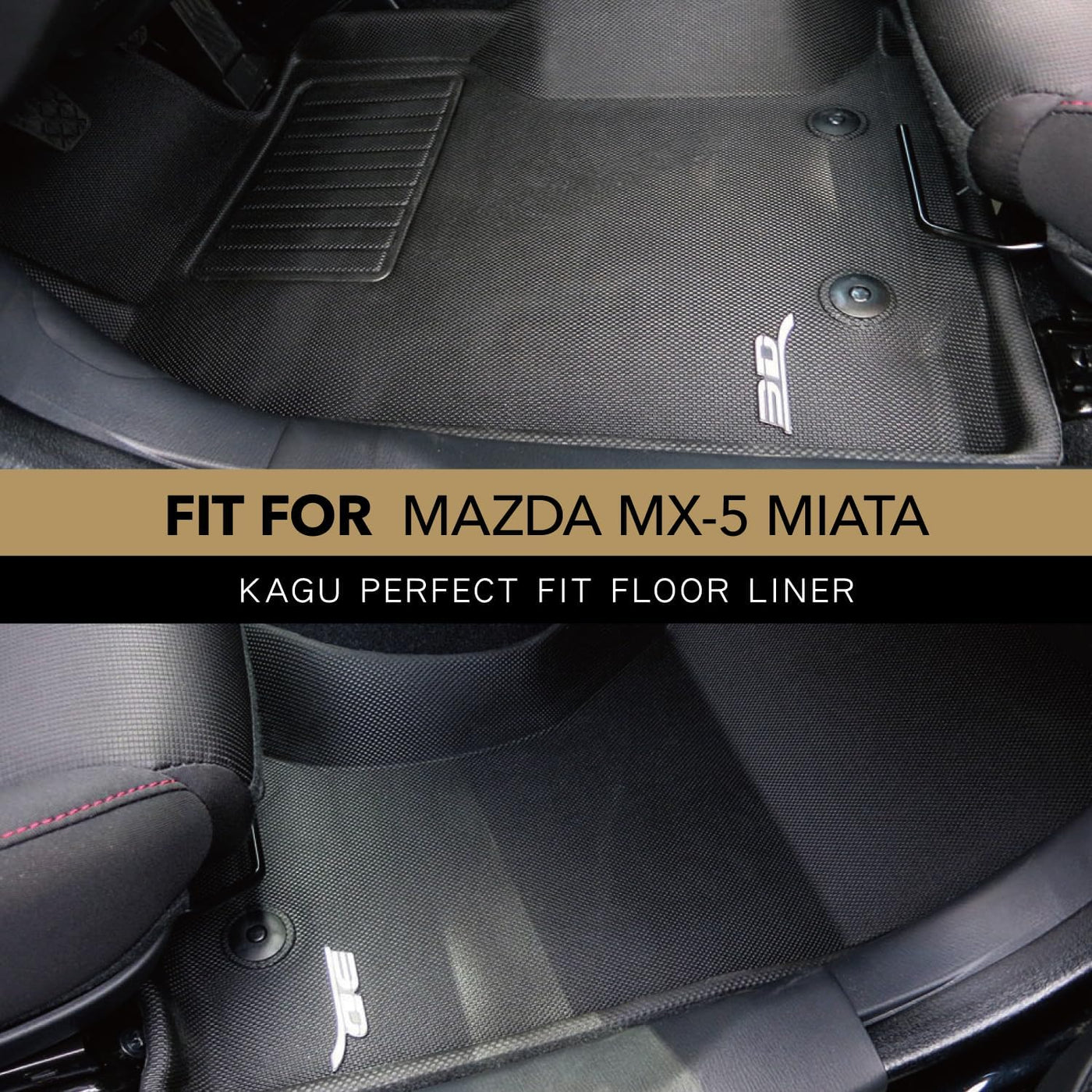 3D MAXpider Custom Fit Kagu Floor Mat (Black) Compatible with Mazda MX-5 Miata 2016-2024 / Fiat 124 Spider 2017-2018 - Front Row