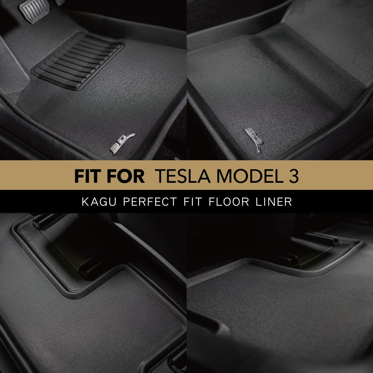 3D MAXpider Custom Fit KAGU Floor Mat (BLACK) for 2018-2019 TESLA MODEL 3 - 1ST ROW 2ND ROW