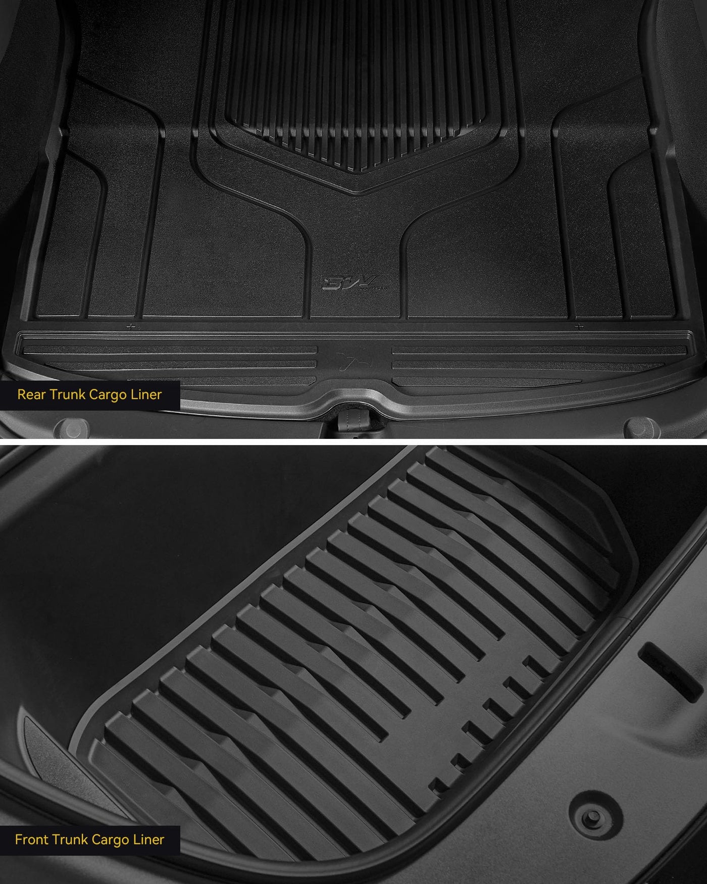 3W All-Weather TPE Floor Liner - Full Set Black Floor Mats and Cargo Liner Mat Custom Fit for Tesla Model 3 2021-2023
