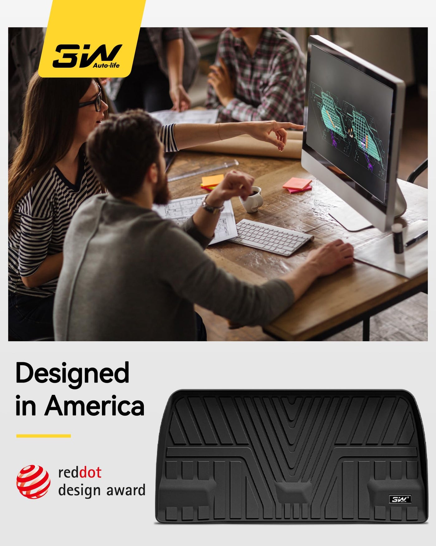 3W Auto Accessory Inc: 3W stands for Wonderful, Worldwide, Worthy. We are a company manufacturing floor liners/trunk mat with 25 years of history. We are one of the first companies in this filed to use TPE and injection molding to manufacture floor liners. The traditional floor liners are made by compression molding, which does not allow for many details, causing the floor liners/cargo liner to be rigid and stiff. 3W floor liners/cargo mat are designed with different patterns fitting the style of different models of cars. TPE material: 3W car mats are made from Thermoplastic Elastomers, which shows advantages of both rubbery materials and plastic materials thus having more strength, resilience, durability and elasticity. It has more outstanding thermal properties and material stability when exposed to an extreme temperature. 3W trunk mat has no odor even in extremely hot weather with all car windows closed, and can stay resilient in extremely cold weather. Some babys pacifiers are made from the same material. This design won the 2017 Red Dot award in Germany. Custom fit and easy to clean: Each 3W cargo liner is custom fit. We scan the interior of each car and computer design the pattern incorporating key elements of the vehicle, gives the trunk mat a customized look and feel, will match the interior of your car perfectly. The back of 128W floor liners are designed with air pockets to effectively absorb the noise from the chassis. In addition, every car liner has a raised containment walls protecting your vehicle from all kinds of mess. You can finish cleaning up the cargo liners within few minutes.