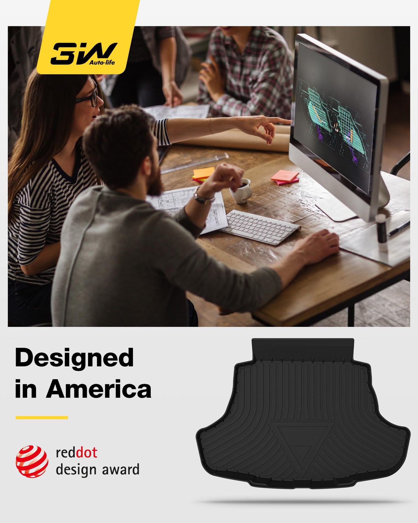 3W Auto Accessory Inc: 3W stands for Wonderful, Worldwide, Worthy. We are a company manufacturing floor liners/trunk mat with 25 years of history. We are one of the first companies in this filed to use TPE and injection molding to manufacture floor liners. The traditional floor liners are made by compression molding, which does not allow for many details, causing the floor liners/cargo liner to be rigid and stiff. 3W floor liners/cargo mat are designed with different patterns fitting the style of different models of cars. TPE material: 3W car mats are made from Thermoplastic Elastomers, which shows advantages of both rubbery materials and plastic materials thus having more strength, resilience, durability and elasticity. It has more outstanding thermal properties and material stability when exposed to an extreme temperature. 3W trunk mat has no odor even in extremely hot weather with all car windows closed, and can stay resilient in extremely cold weather. Some babys pacifiers are made from the same material. This design won the 2017 Red Dot award in Germany. Custom fit and easy to clean: Each 3W cargo liner is custom fit. We scan the interior of each car and computer design the pattern incorporating key elements of the vehicle, gives the trunk mat a customized look and feel, will match the interior of your car perfectly. The back of 412W floor liners are designed with air pockets to effectively absorb the noise from the chassis. In addition, every car liner has a raised containment walls protecting your vehicle from all kinds of mess. You can finish cleaning up the cargo liners within few minutes.