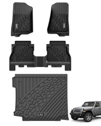 3W Floor Mats&Cargo Liner Compatible for Jeep Wrangler JL 2018-2024 Unlimited 4-Door with Subwoofer (Non JK or 4XE) All-Weather